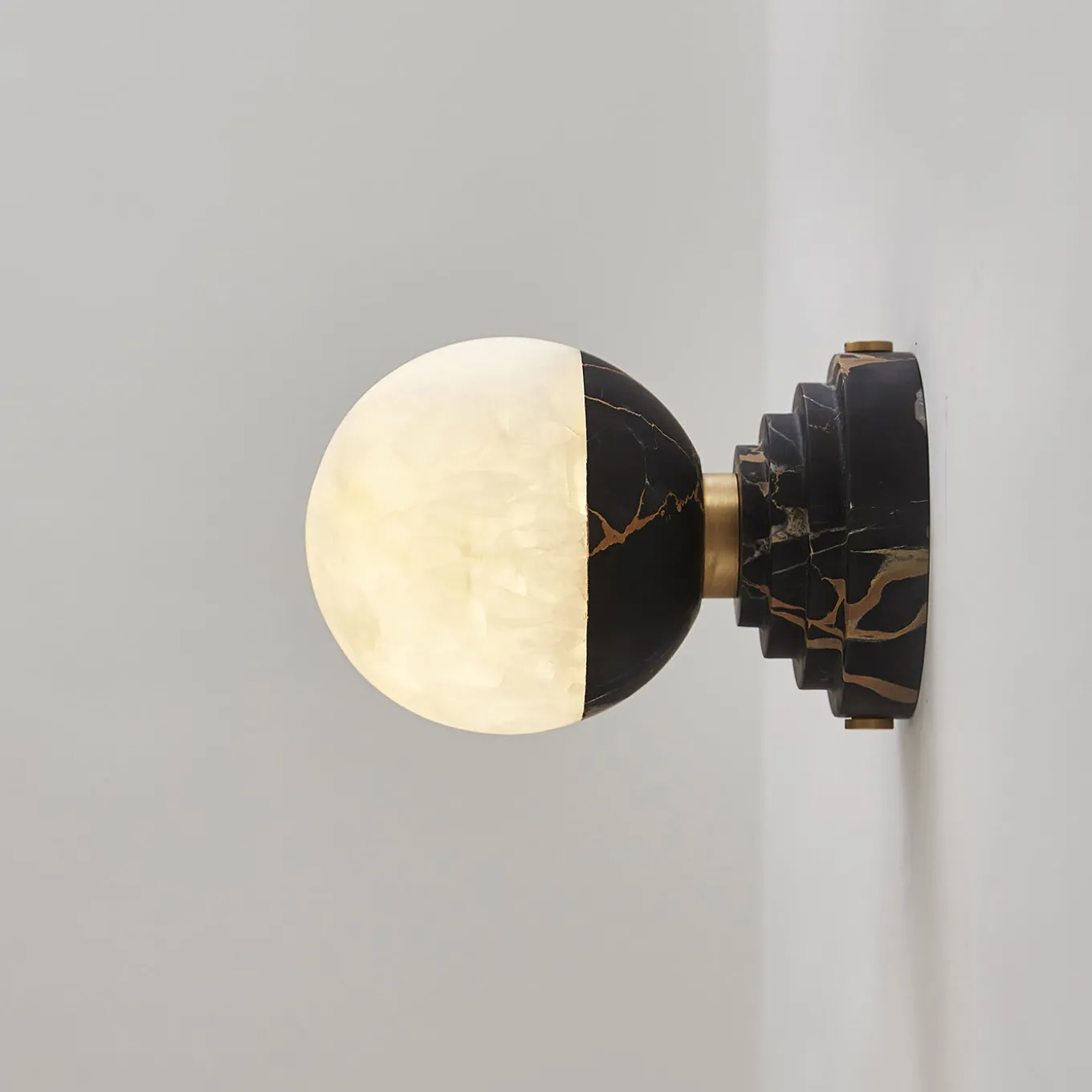 Un carattere intenso emana da questa raffinata applique che celebra la luna, fonte di fascino per poeti, pittori e poetesse di tutti i tempi. Il diffusore sferico in affascinante onice bianco proietta una luce calda e accogliente nell’ambiente, il suo retro in marmo Portoro si abbina al supporto a parete a gradini composto da elementi cilindrici. Adatta anche come lampada a sospensione e da tavolo, questa lampada è disponibile in altre varianti di marmo e ospita una singola lampadina LED G9. Per opzioni e ulteriori specifiche tecniche, contattare il Concierge.
