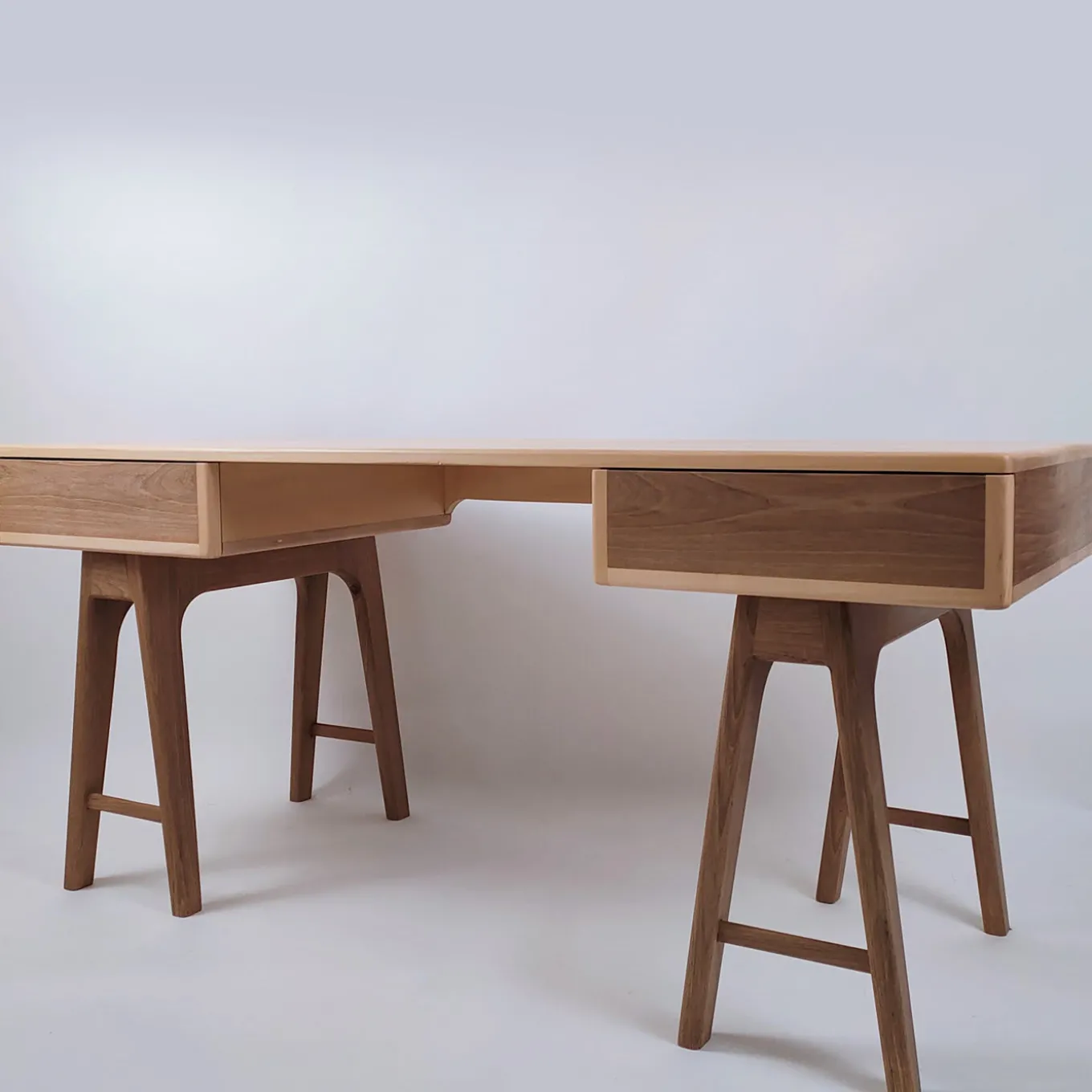 La scrivania Nathalie è una postazione di lavoro all’avanguardia, caratterizzata da due gambe a cavalletto e da un ampio piano d’appoggio con cassetti nascosti per mantenere lo spazio d’ufficio elegantemente ordinato. Un design in stile scandinavo, che si rifà alla sua inclinazione per un’architettura elegante, essenziale e senza complicazioni, questa scrivania combina il legno di noce (base e cassetti) con quello di acero massiccio (piano) per un suggestivo contrasto cromatico. I cassetti sono costruiti con incastri a coda di rondine e sono dotati di guide di scorrimento metalliche nascoste e di chiusura Blumotion. Completamente personalizzabile su richiesta, si prega di contattare il Concierge per i dettagli.