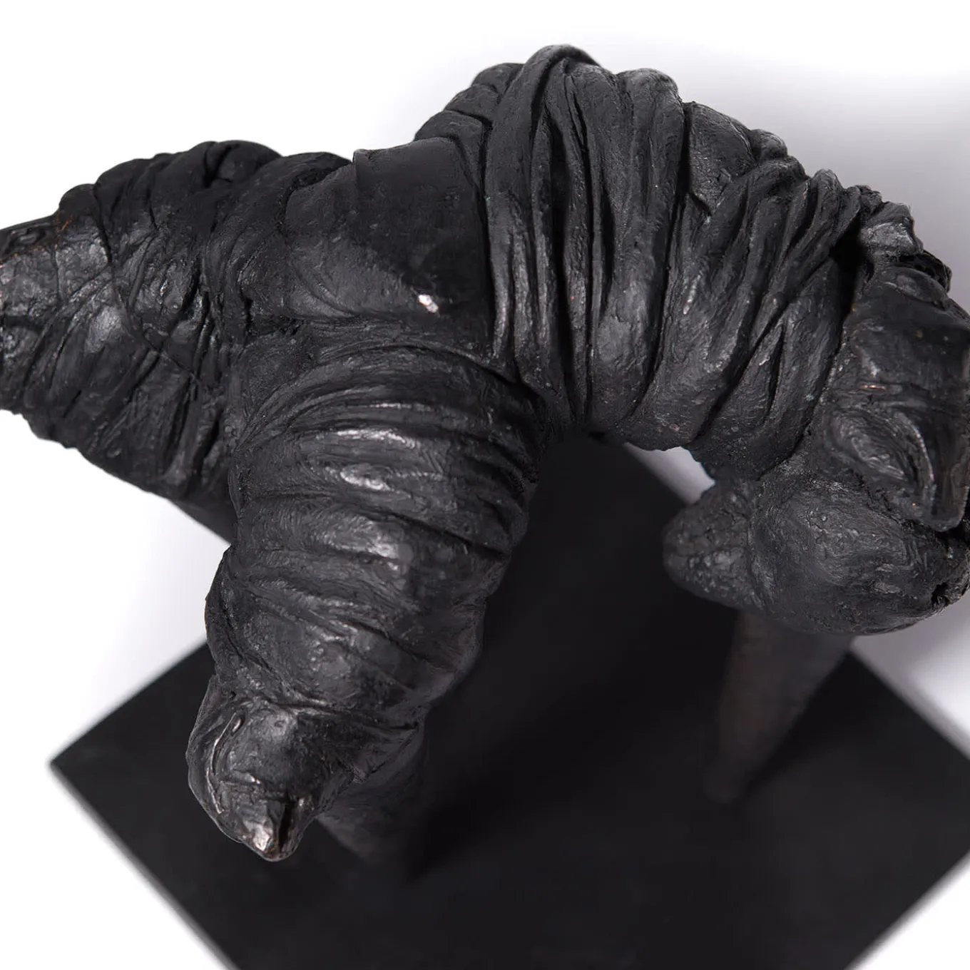 Forgiata in bronzo a cera persa con una patina nera, questa figura, simile a un uomo sui trampoli o a una larva in lotta, si muove su gambe coniche. Legata da strette bende, nasconde il vero sé, favorendo un intimo ritiro che, paradossalmente, nutre l’individualità. Personalizzabile su richiesta in bronzo dorato, senza patina. Le opere d’arte in metallo fuso di Wanderart sono tutte realizzate a mano, pertanto le dimensioni e il peso possono variare.