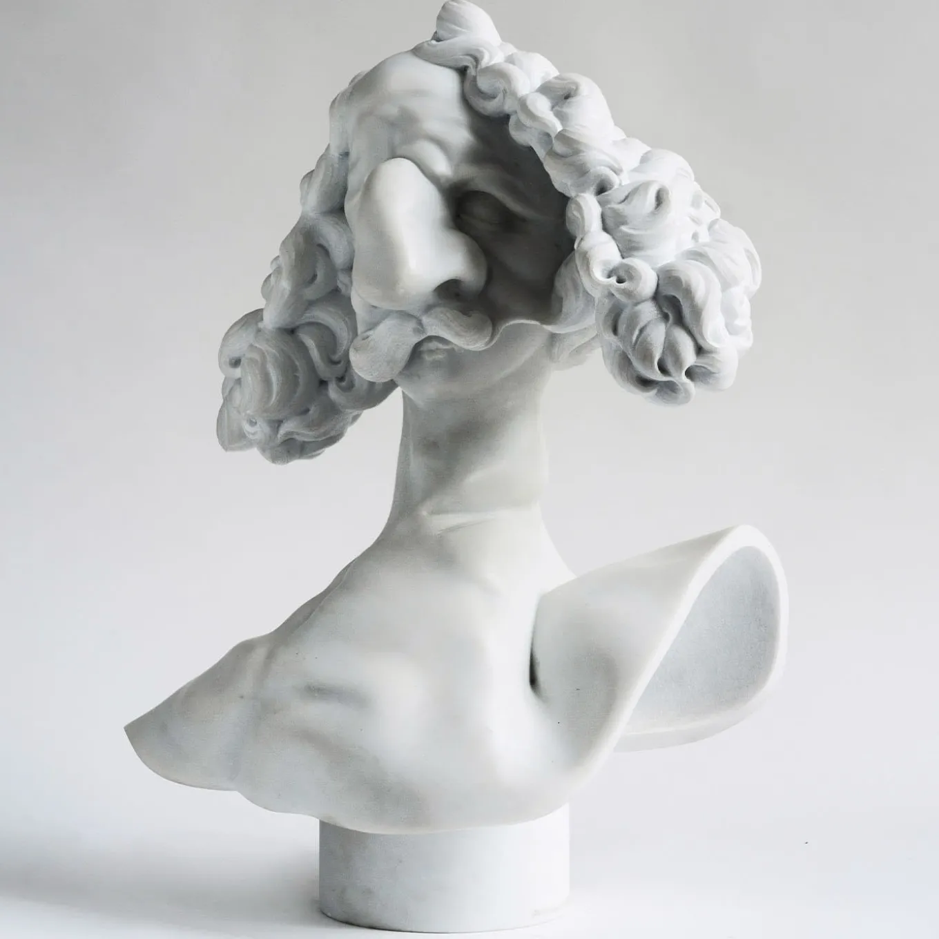 La visione di una società contemporanea storta ha ispirato i tratti deliberatamente deformati di questa scultura dello scienziato Albert Einstein. Questa idea è resa attraverso la magistrale scultura del pregiato marmo bianco di Carrara come se fosse gomma, un’estetica che sembra riflettere la società e che è possibile solo grazie all’impareggiabile livello di maestria dell’artista Matteo Peducci.