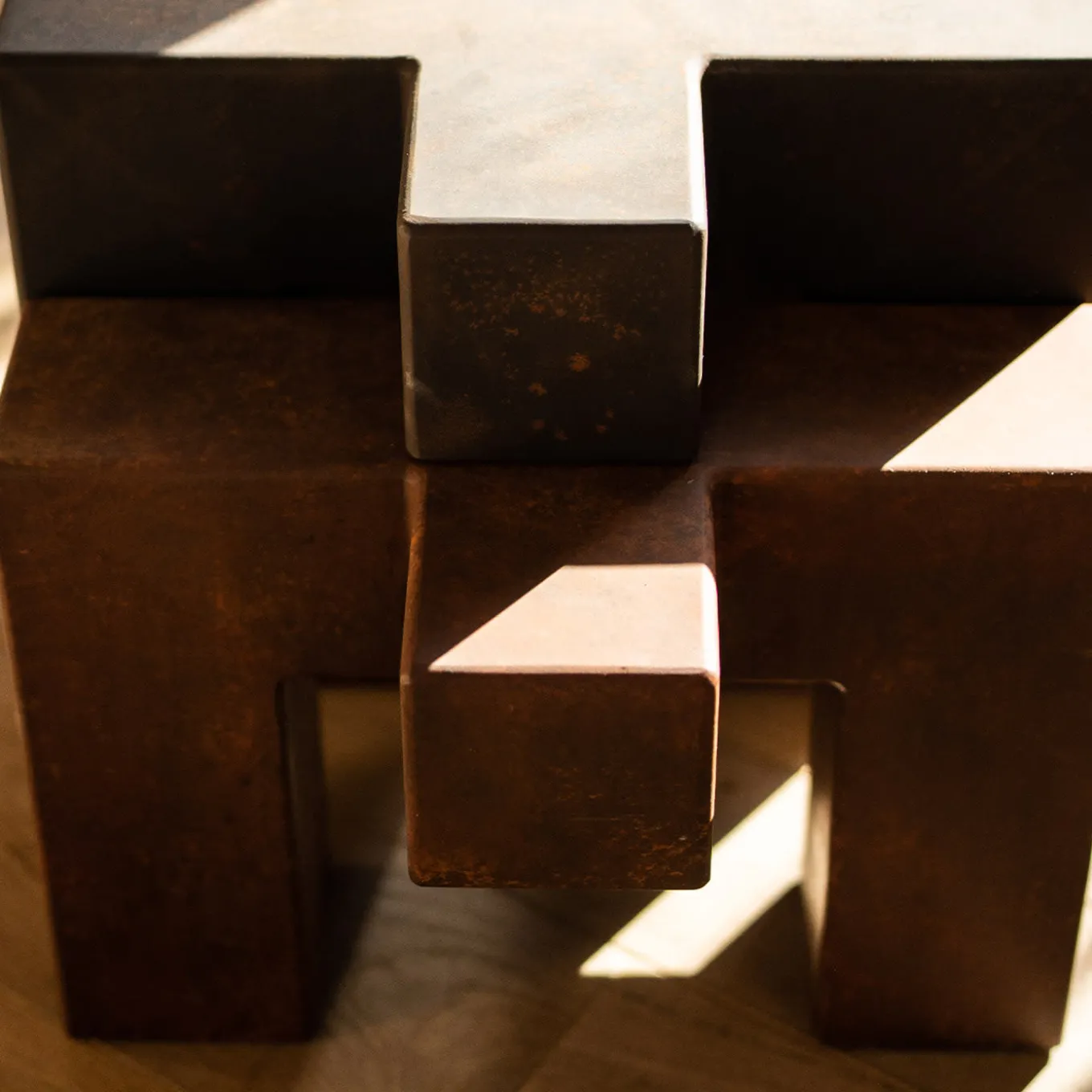 Prono Support, scultura in due parti sovrapposte. Acciaio ossidato, acciaio brunito. Prono Support fa parte del ciclo Prono, un archetipo centrale nel lavoro dell’artista. Quest’opera, in equilibrio tra forza e fragilità, parla di sostegno nel momento del bisogno, anche se ogni interpretazione è libera. Edizione limitata di 9 esemplari.