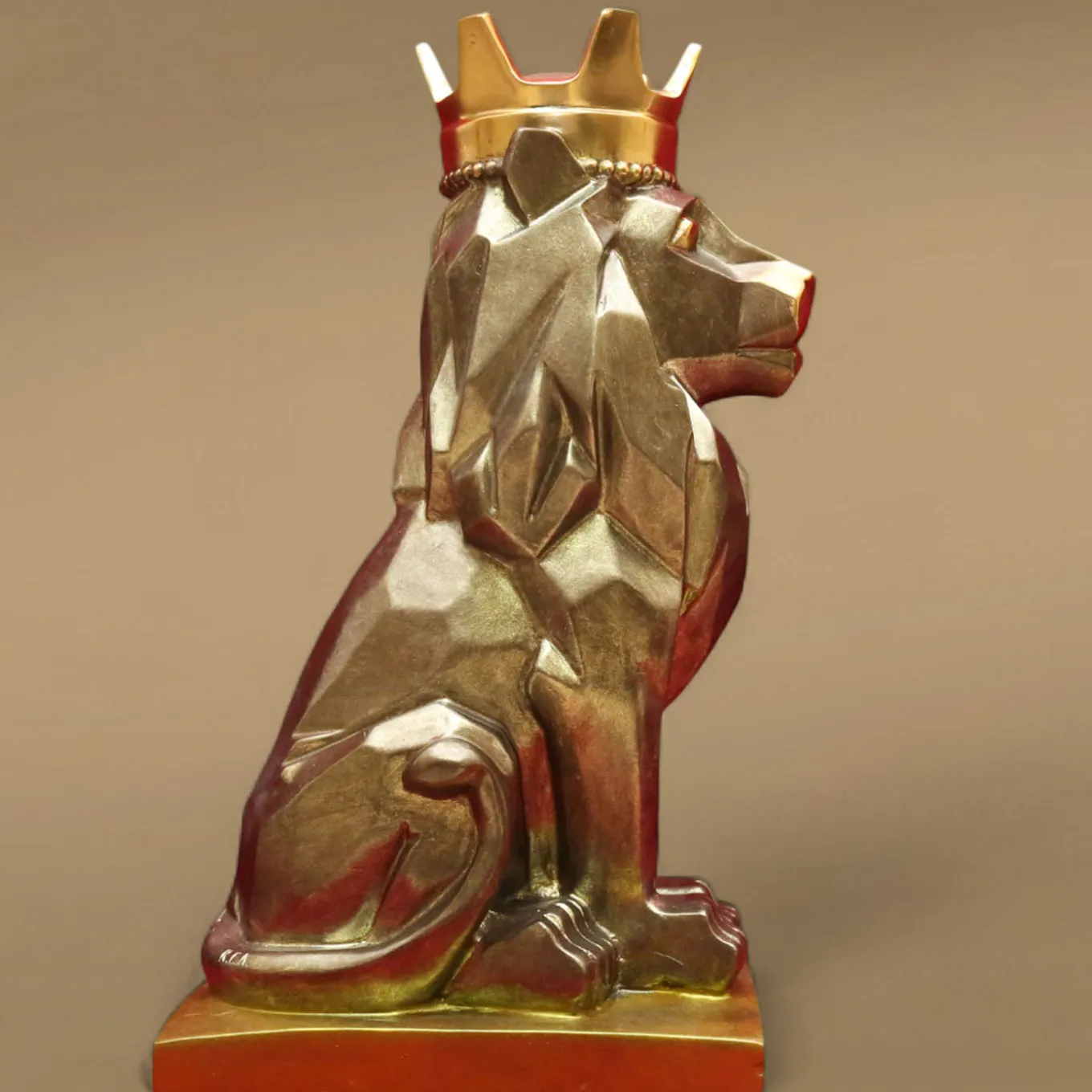 Con la sua posa regale e la sua moderna silhouette sfaccettata, questo leone stilizzato è completamente realizzato a mano con tecniche di fusione tradizionali in ottone spazzolato e poggia su un’elegante base in plexiglass. Questa statuetta di sobria eleganza impreziosirà un interno moderno o classico con la sua calda intensità dorata. Il pezzo misura 16x22x33 cm.