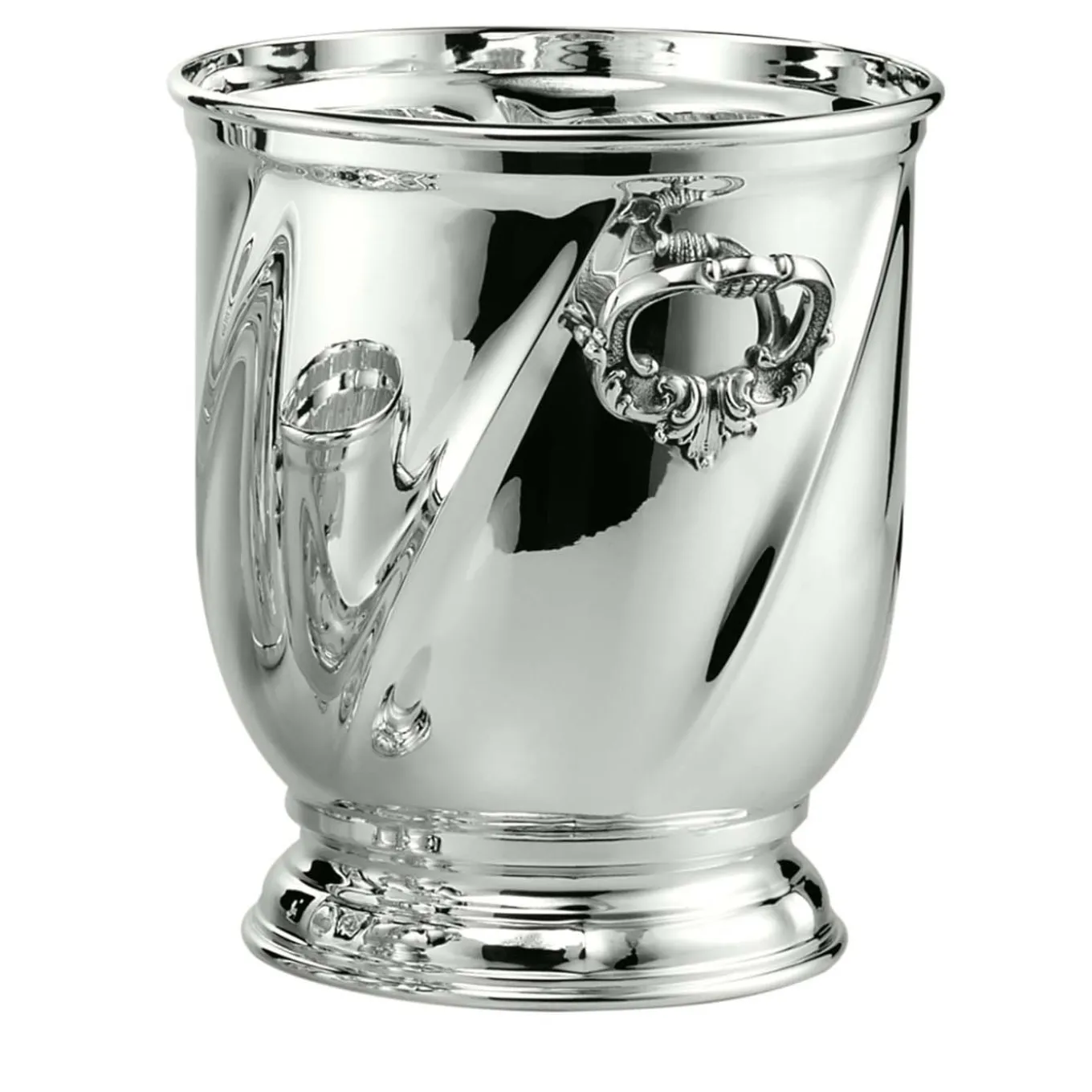 Incorporando dettagli elaborati dello stile del XVII e XVIII secolo, questo superbo secchiello da champagne presenta una finitura argentata liscia e scintillante. Due manici decorativi con volute intrecciate impreziosiscono i lati della silhouette con piedi, creando un look superbamente sofisticato. Questo pezzo può essere personalizzato con monogrammi incisi su richiesta. Disponibile anche in argento massiccio e con placcatura in oro parziale o totale.