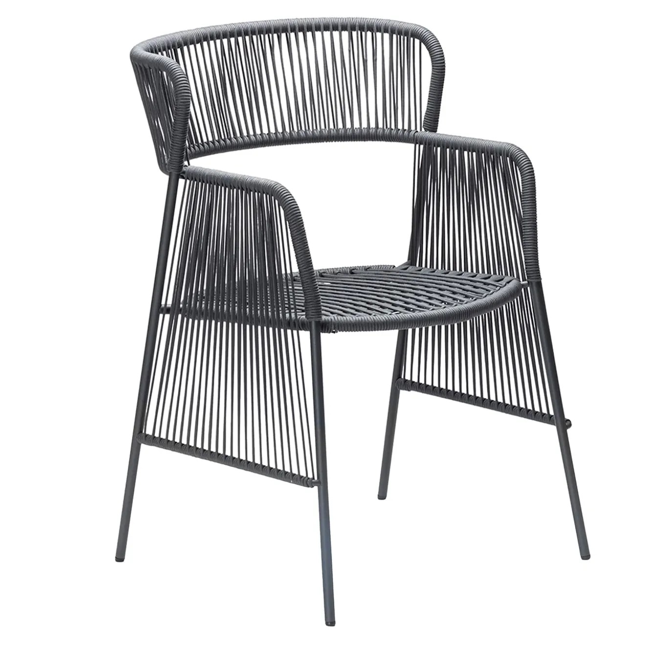 Elegante struttura in metallo verniciato a polvere Sand per uso esterno. Intrecciata a mano con corda marina color antracite notte. Sono disponibili altri colori.