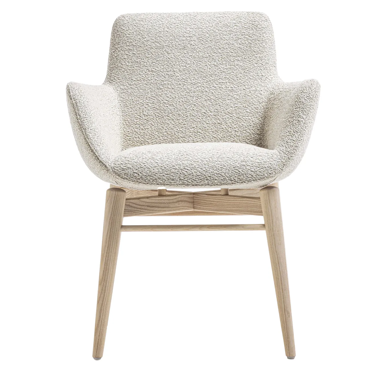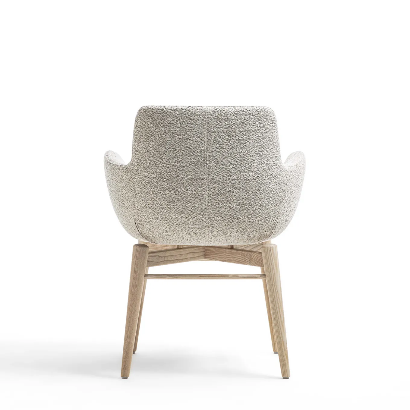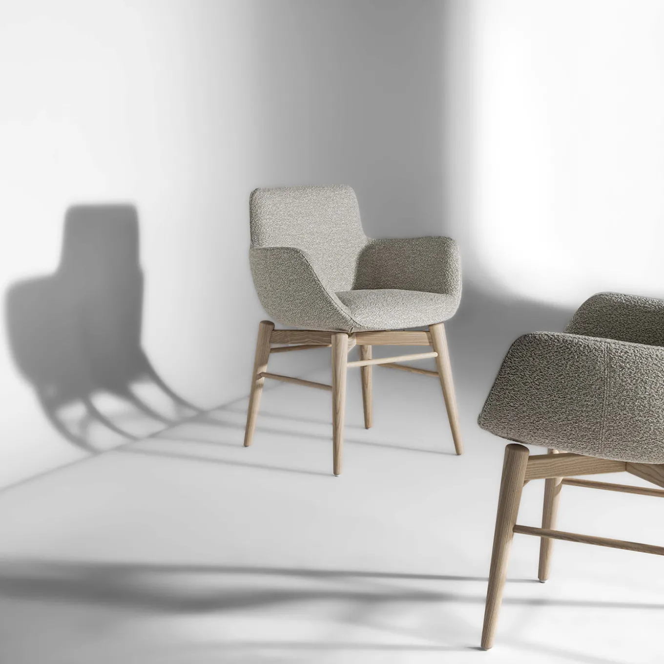 La sedia Aura presenta una forma classica e avvolgente e un sedile confortevole, che mette in mostra una tappezzeria e un’imbottitura sofisticate. La cucitura decorativa e precisa segue elegantemente la silhouette curva della sedia. La base leggera e raffinata, realizzata in legno massello di alta qualità, crea un’illusione ottica, facendo sembrare che il sedile fluttui graziosamente nell’aria, aggiungendo un tocco di eleganza e sofisticatezza a qualsiasi spazio.