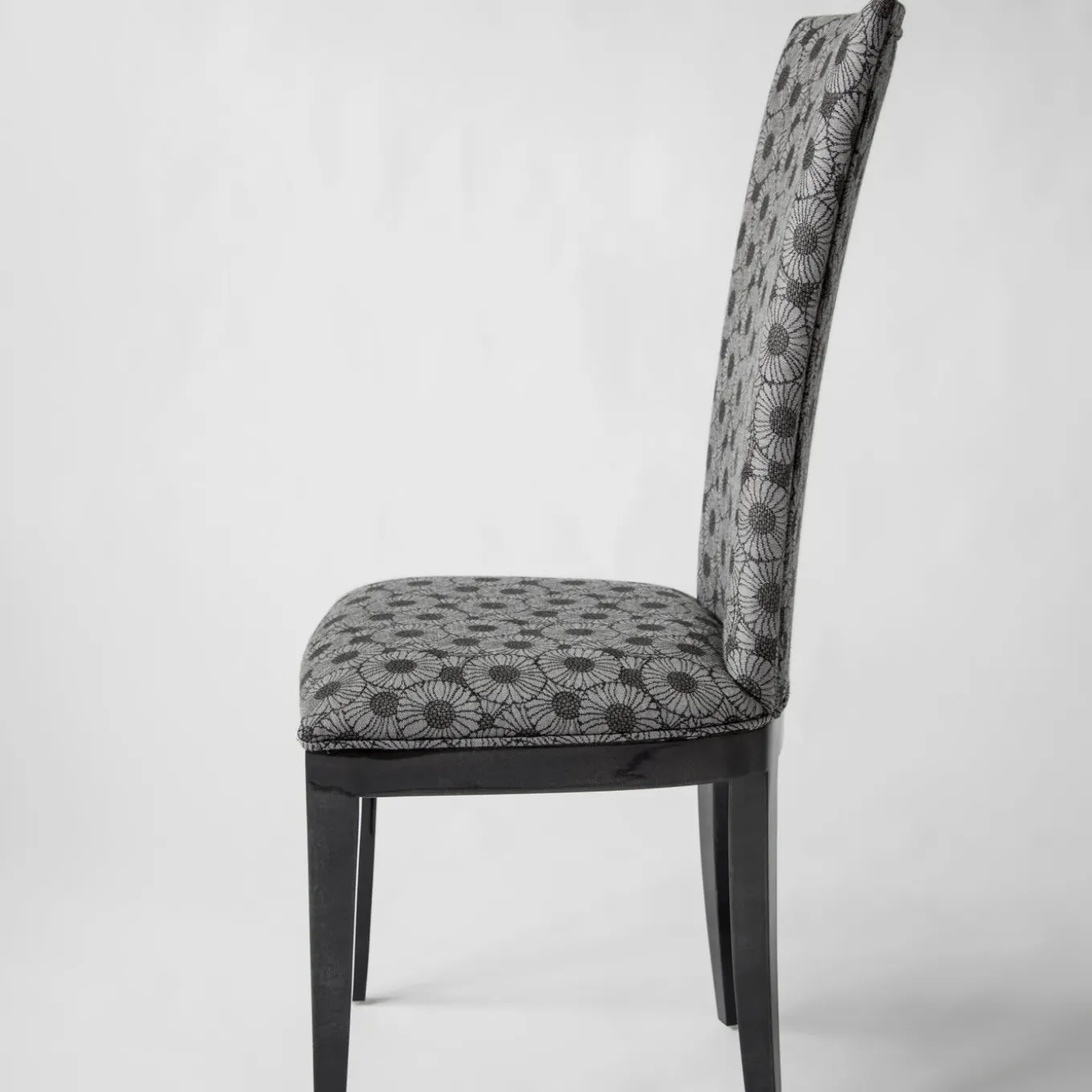 Squisito esempio di seduta di design, la sedia Deco ha una struttura elegante e sofisticata rivestita in pergamena lucida grigio antracite e presenta una seduta e uno schienale imbottiti e rivestiti in tessuto vintage. Il design accattivante si adatta a qualsiasi arredamento moderno o classico della sala da pranzo, del soggiorno o del salotto.