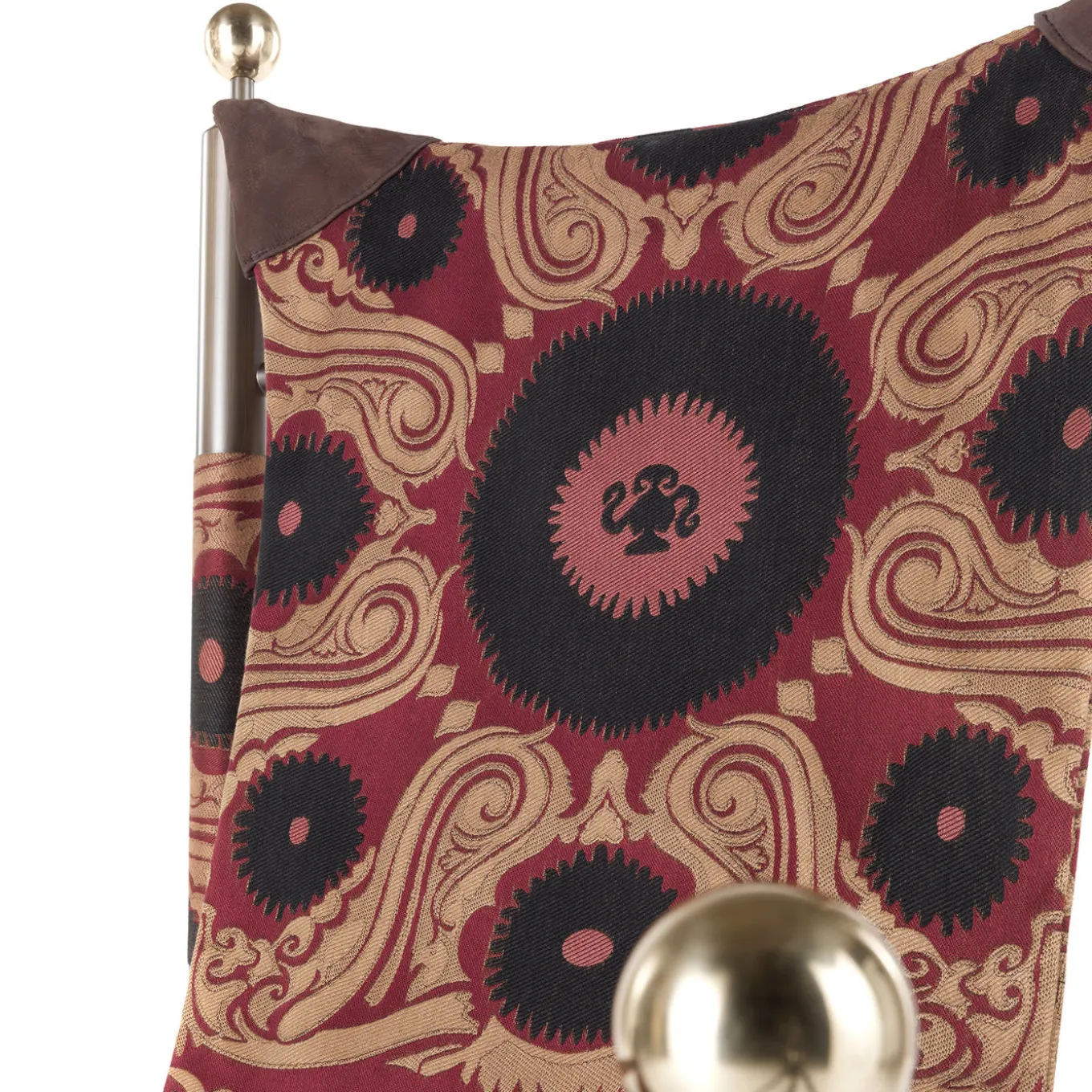 Il pezzo iconico, parte della “Nomadic Story”, ispirata ai viaggi in India e in Asia occidentale, in cui il potere del linguaggio simbolico è espresso attraverso l’uso magistrale dei tessuti e del motivo per eccellenza del marchio, il Paisley. La seduta Babel ha una forma che ricorda quella di una sedia da viaggio pieghevole, pur mantenendo una forma raffinata e lussuosa, simile a un trono. L’essenza del tema del viaggio della collezione si arricchisce così di un tocco di ironia, il racconto del viaggio enfatizzato dalla presenza simbolica di una valigia, compagna fidata delle terre lontane tanto care al marchio. Sedia da viaggio pieghevole con struttura in metallo patinato bronzo. Rivestimento in tessuto cat. A Bukhara col. 1 Nomad. Dettagli in pelle cat. A Nuuk col. 1 Marrone e ottone lucido L 71 P 70 H 129′ Baule da viaggio con struttura in legno. Rivestimento come per la sedia pieghevole. Dettagli in pelle cat. A Nuuk col. 1 Metallo marrone e bronzo patinato. Puntali in ottone lucido. Si prega di informarsi presso il Concierge.