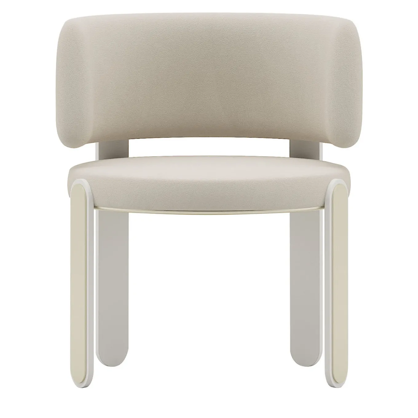 Caratterizzata da linee senza tempo di impareggiabile ed elegante semplicità, questa splendida poltrona combina uno stile versatile e contemporaneo con un’abile maestria artigianale. Realizzata in legno, arricchita da dettagli in metallo, la seduta arrotondata con schienale curvo è rivestita in velluto color crema. Per ulteriori informazioni e opzioni di personalizzazione, consultare il Concierge.