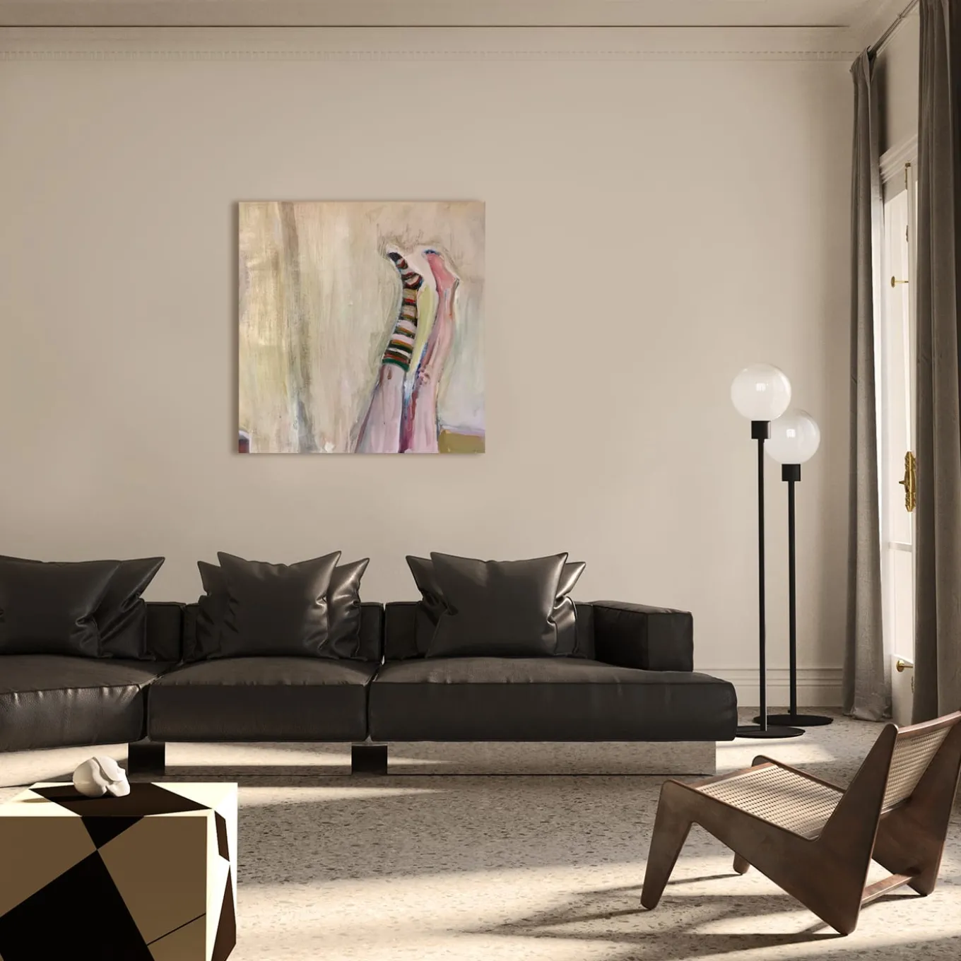 Questo dipinto “senza titolo” raffigura un’immagine giocosa che emana emozioni vivaci e briose. Raffigurando le due gambe di un giovane individuo, una scalza e l’altra coperta da un lungo calzino a righe, esplora i concetti di identità e personalità. Per ulteriori informazioni, consultare il Concierge. Si tratta di un’opera d’arte unica. Consegnata con un certificato di autenticità. La cornice non è inclusa.