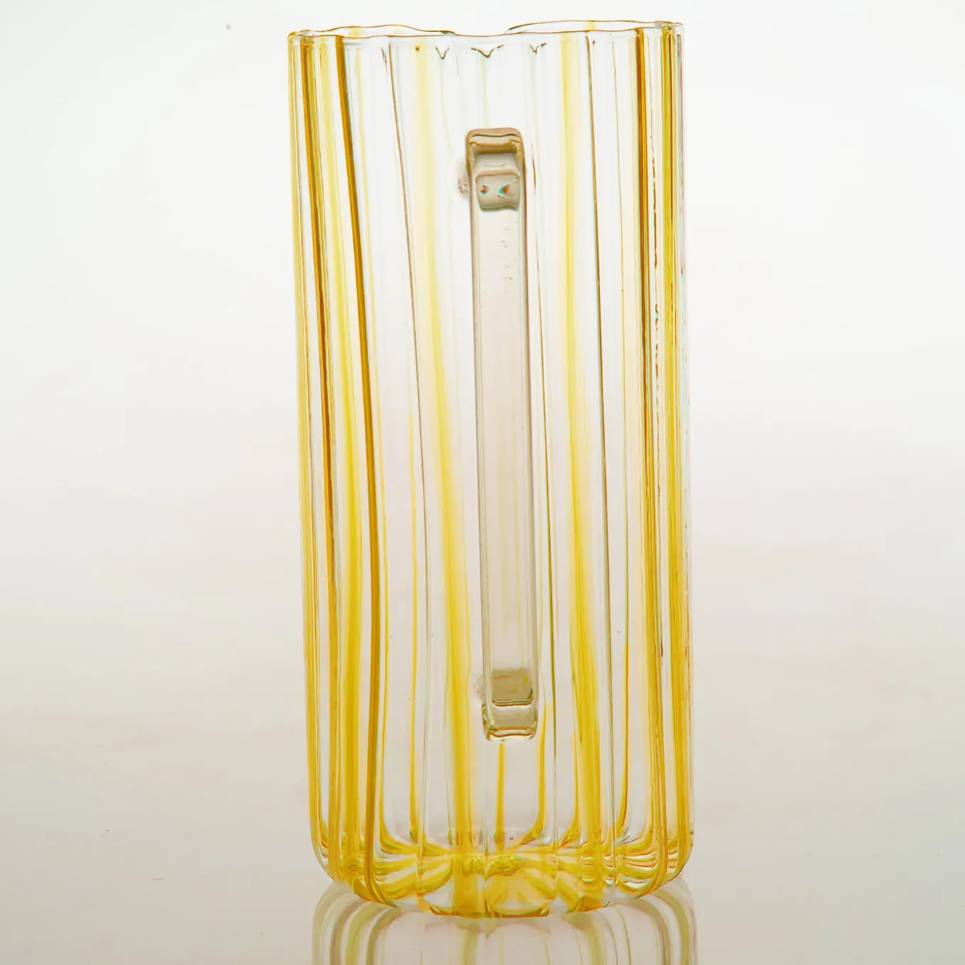 L’autentica brocca in vetro rigato “Serlio” ha un design minimalista con geometrie lineari del manico. Soffiata a mano da artigiani italiani, questa elegante brocca porterà classe su ogni tavola. Un oggetto che dice tutto, che intrattiene gli ospiti con un vero gioiello italiano e che serve dai cocktail ghiacciati alle bevande calde.