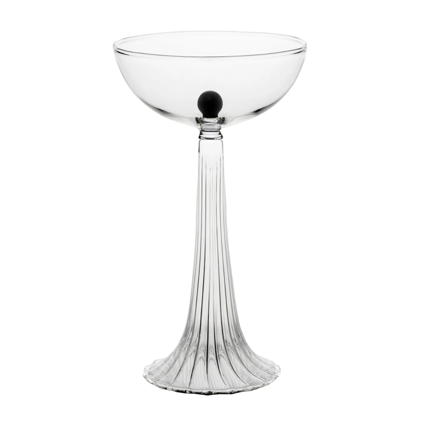 Il calice Nereida trae ispirazione dai regni sottomarini mitologici, con una forma scultorea che racchiude una sfera di vetro nero, evocativa di una perla preziosa. Ideale per esaltare la presentazione di vini spumanti e cocktail, unisce arte e funzionalità grazie allo stelo scanalato elegante e alla coppa ampia, offrendo un’esperienza di degustazione raffinata.
