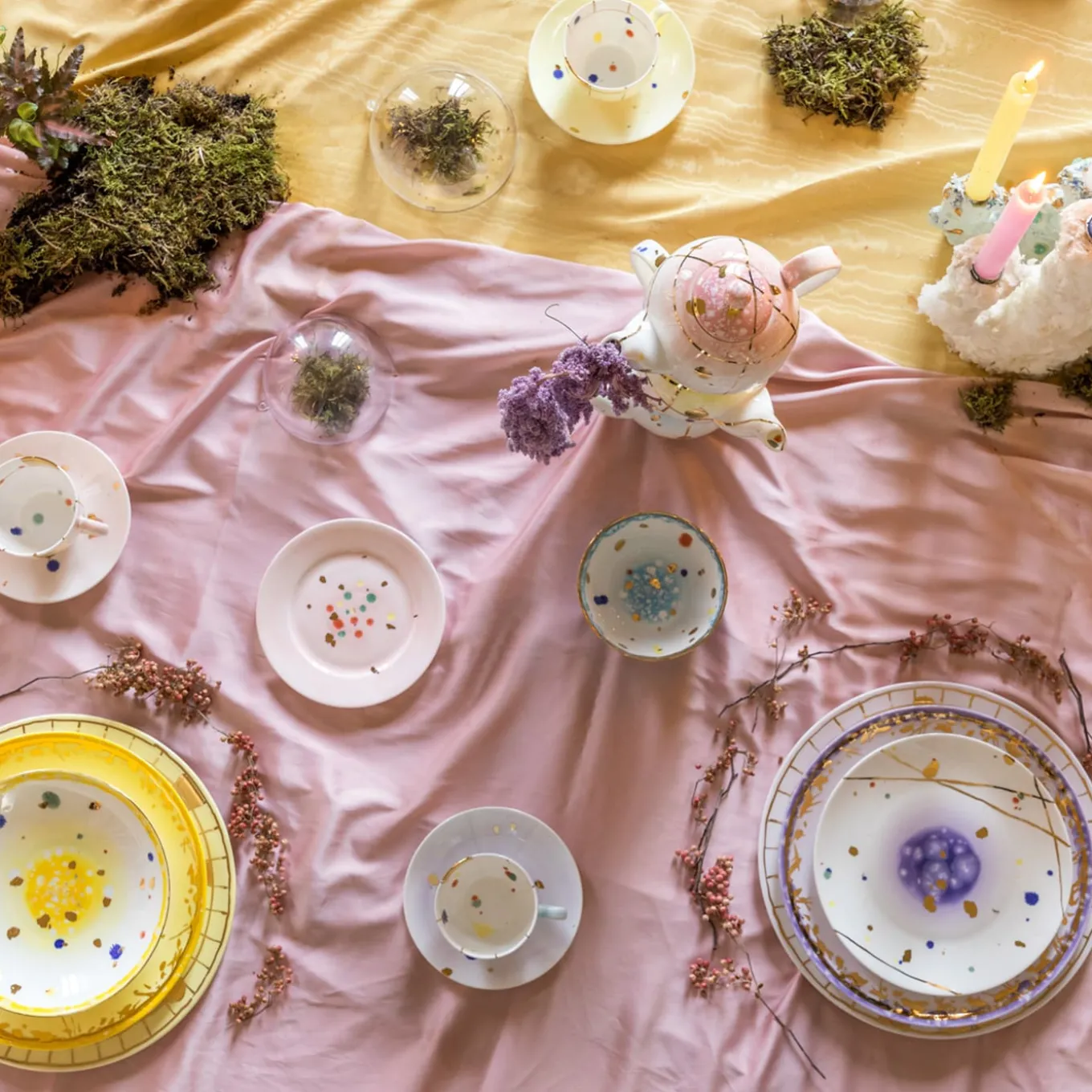 La Collezione Florida, lanciata nel 2023, incarna lo spirito vibrante e lussuoso della Florida. Il suo centro dai colori delicati è accentuato da punti multicolore, mentre il bordo è adornato con ricche foglie dorate, aggiungendo un tocco di opulenza.