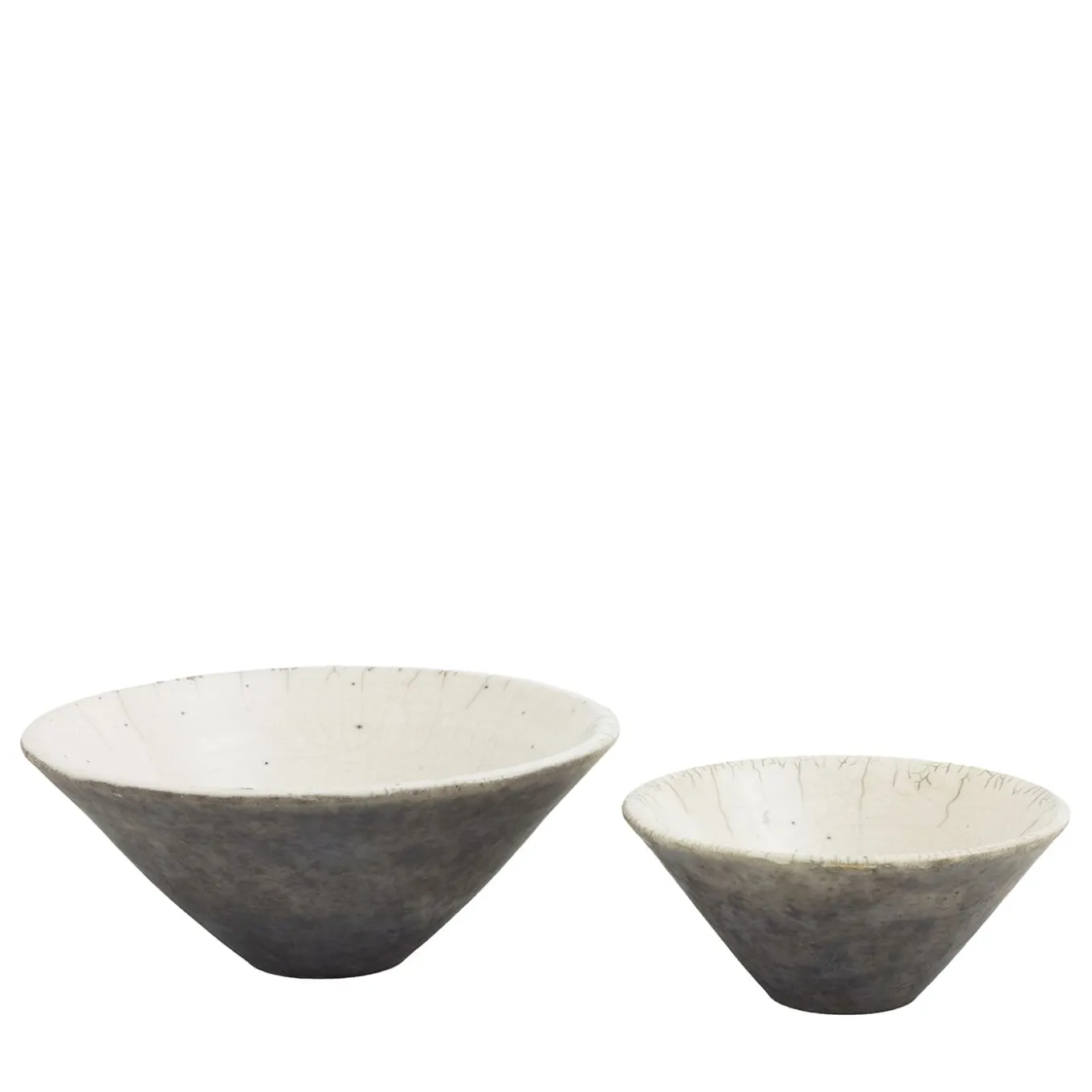 Questo set di due ciotole in ceramica, unico nel suo genere, è una vetrina dell’artigianato ceramico in impeccabile stile giapponese. Frutto dell’antica tecnica Raku, il dinamico effetto crepato che caratterizza i pezzi si combina con un disegno intensamente screziato all’esterno, che contrasta con il bianco luminoso dell’interno. Il processo di lavorazione artigianale cattura la singolarità di ogni pezzo.