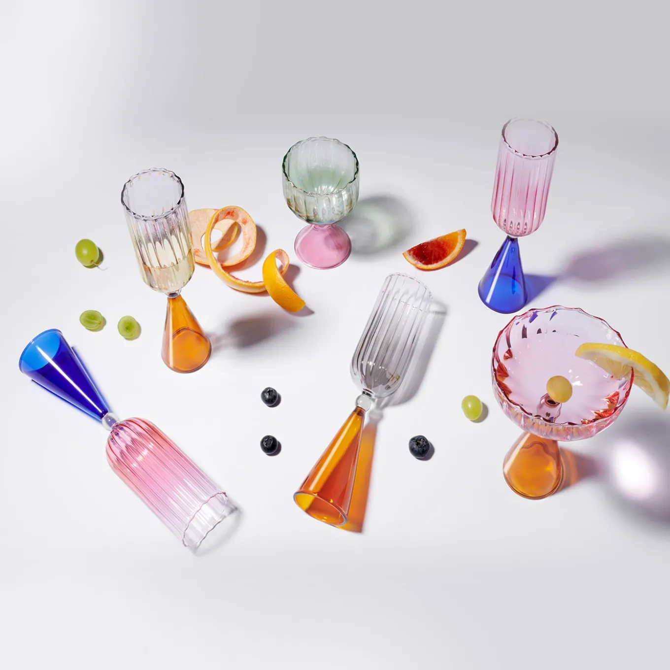 Set di 2 flute in vetro borosilicato soffiato a mano. La collezione Calypso è realizzata a mano da abili artigiani italiani: ogni pezzo è unico.