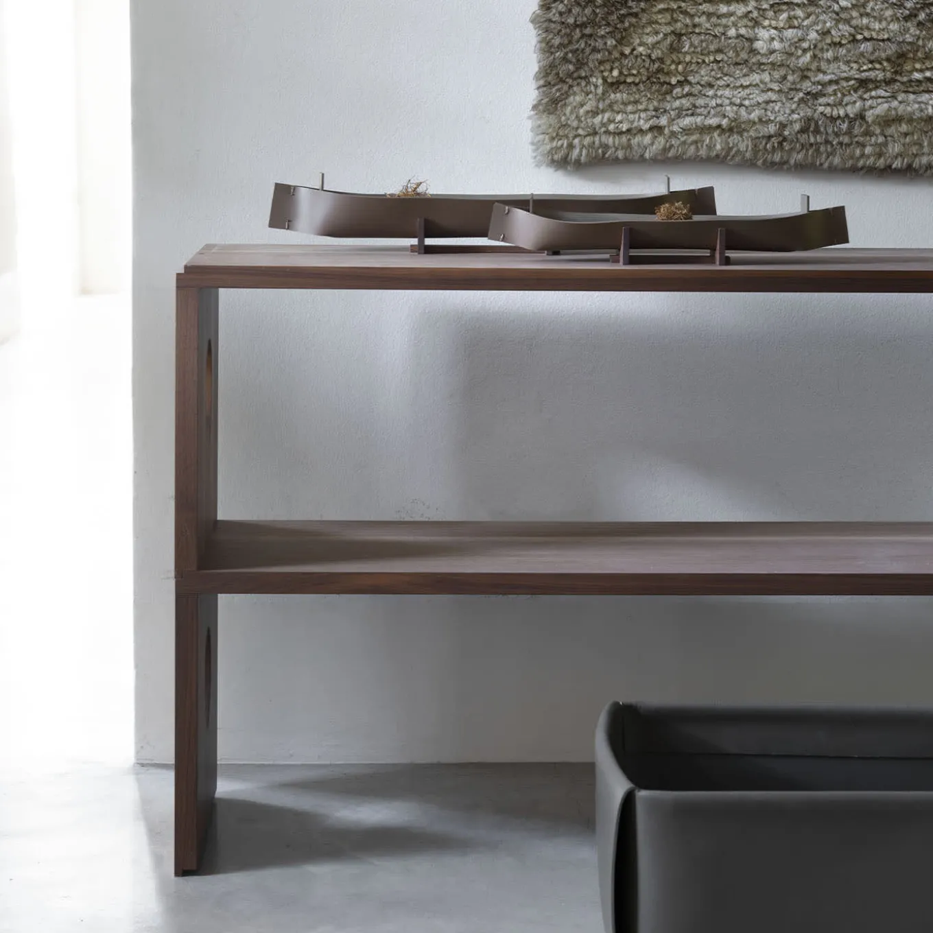 Raffinato oggetto d’arte dalle singolari qualità estetiche ed ergonomiche, questo set di due portapenne a forma di canoa costituirà un accento distintivo e accattivante su un’elegante consolle, un tavolino o una scrivania. Realizzato in pelle, piegato e cucito a mano e appoggiato su un supporto in palissandro, il più piccolo misura 38 x 10 x H 5 cm, il più grande 49 x 10 x H 5 cm. Per ulteriori informazioni, rivolgersi al Concierge.