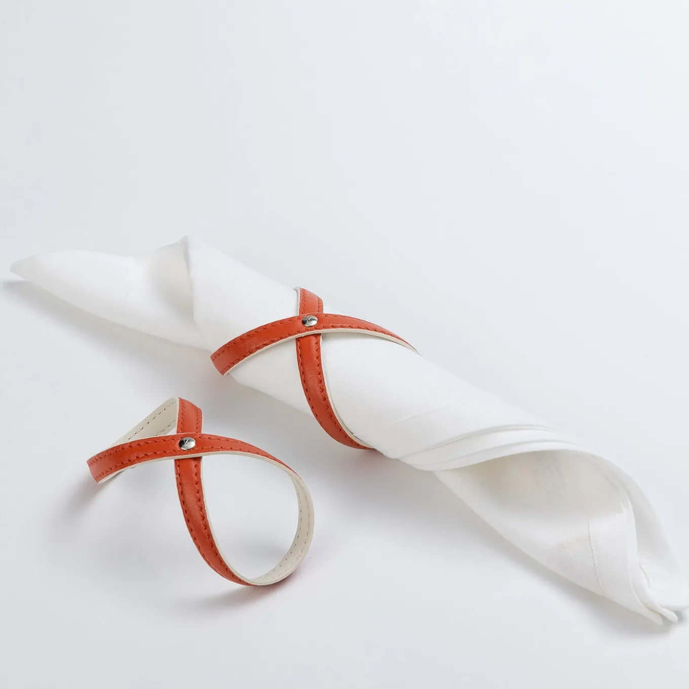 Un design semplice che aggiungerà un tocco raffinato a qualsiasi tavola, questo portatovaglioli è interamente realizzato a mano in pelle anilina di Foglizzo. Incrociato a formare la forma del segno “infinito” e fissato con una borchia metallica al centro, questo delicato anello risalterà intorno ai tovaglioli dai colori naturali, fornendo un contrasto visivo sorprendente e un accento classico sia per gli ambienti formali che per quelli informali. Per ulteriori informazioni, rivolgersi al servizio Concierge.