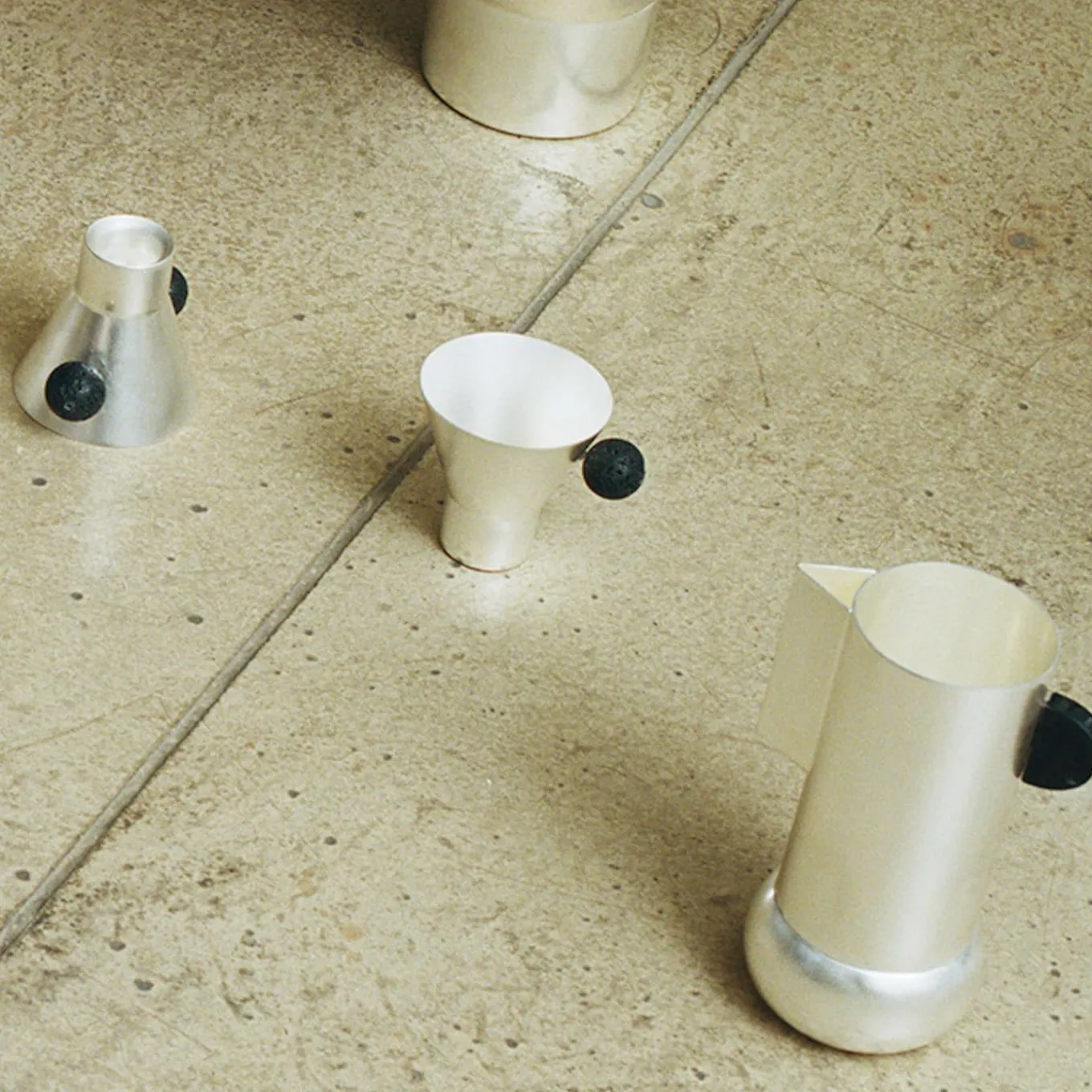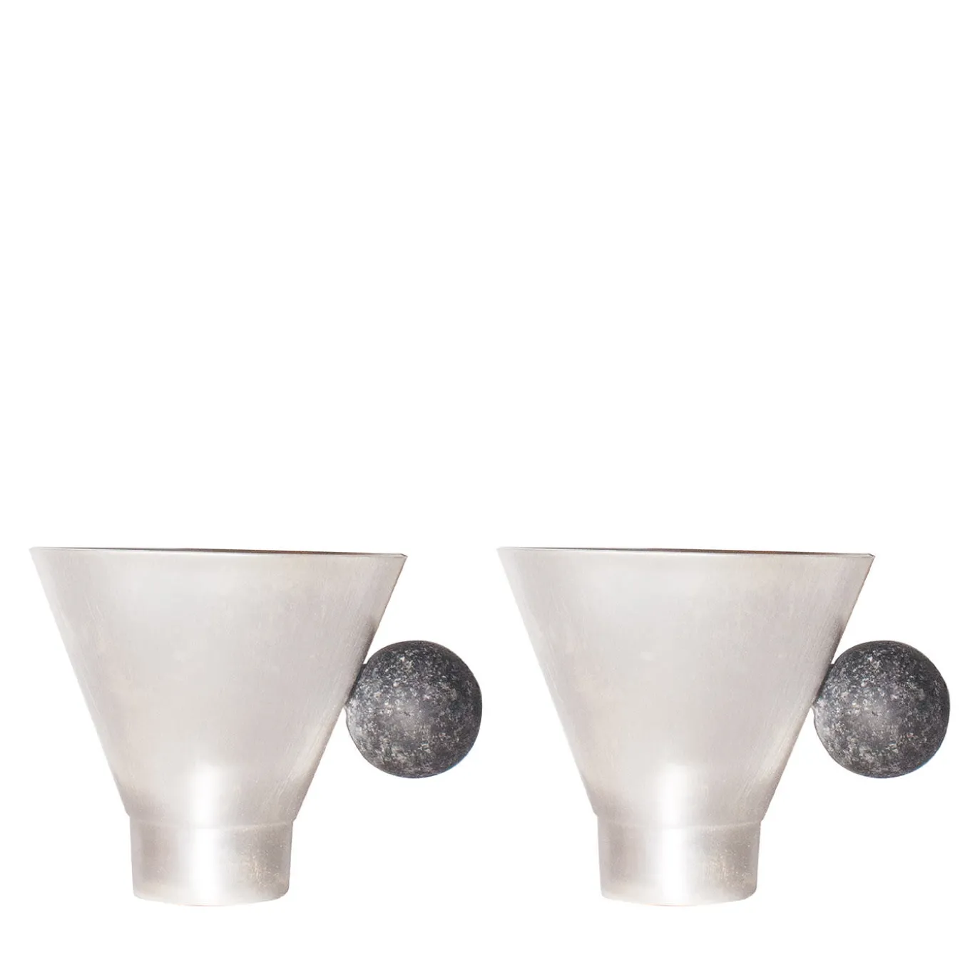 Lava Cup è una coppa artigianale placcata in argento con un dettaglio in pietra lavica nera nel manico, prodotta in Italia dai più grandi artigiani con la tecnica del tornio.