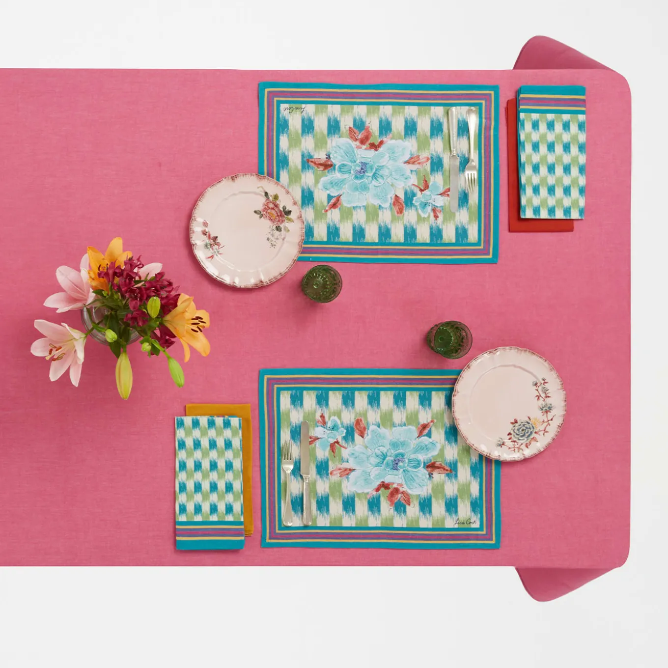 Un connubio tra due eccellenze dell’artigianato: nata all’interno di una capsule di ceramiche e tessuti per la casa realizzati in collaborazione con Lisa Corti, questa Collezione riunisce la storia e l’immaginario di due mondi in una palette fresca e versatile. La forma sagomata accentua il tema romantico, mentre il bordo sfrangiato, dipinto a mano, richiama la tradizionale stampa ikat dei tessuti che completano la capsule.