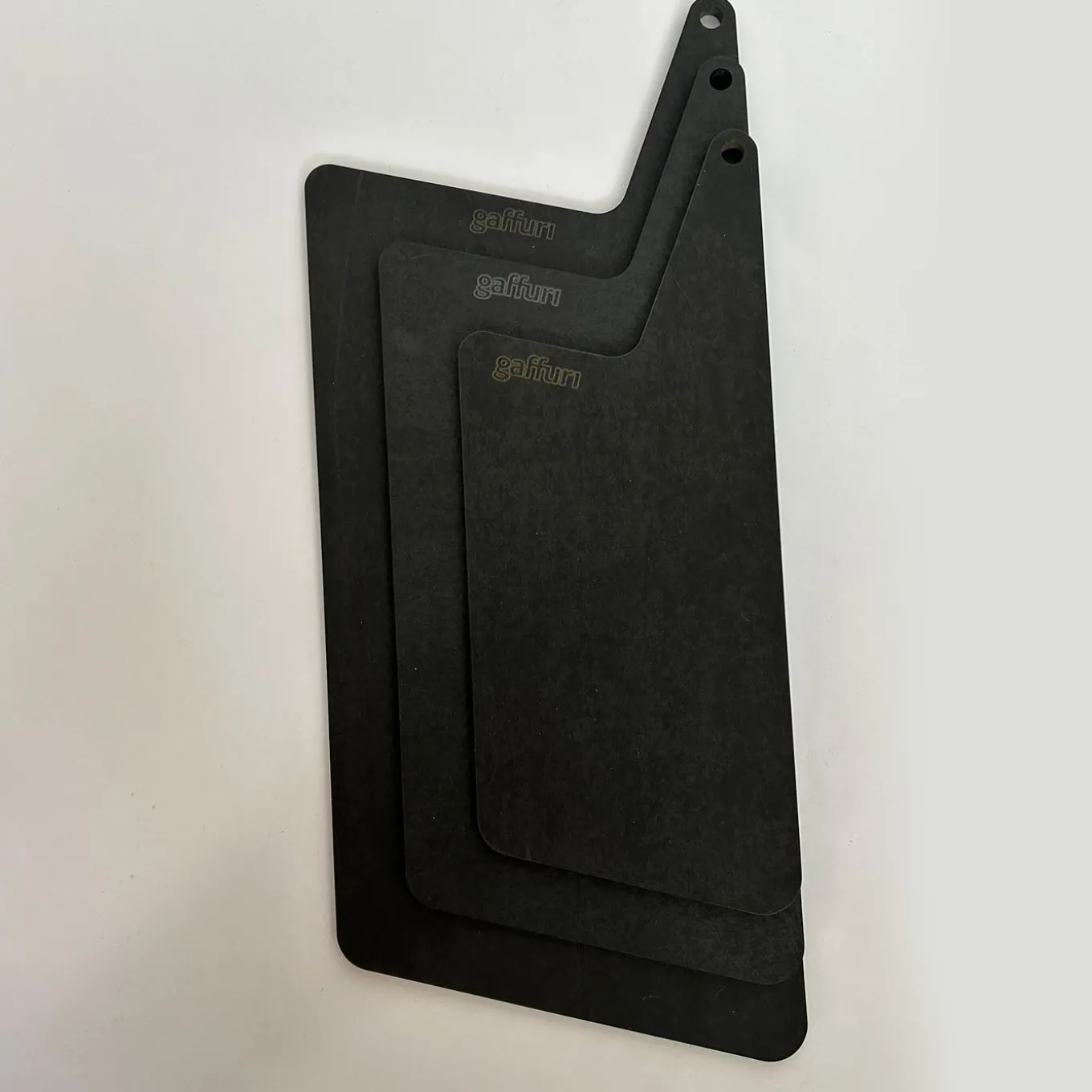 Set di 3 vassoi Paperstone realizzati con il 100% di carta e cartone riciclati con mix certificato FSC®, impregnati con resina naturale PetroFree™ e pigmenti naturali. Paperstone® offre prestazioni tecniche avanzate, con resistenza fino a 180°C senza cambiamenti superficiali, 100% idrorepellenza, certificazione di sicurezza alimentare e compatibilità con la lavastoviglie. Il materiale è ecologico, non tossico e privo di formaldeide e COV. Progettato da Daniela Gaffuri.