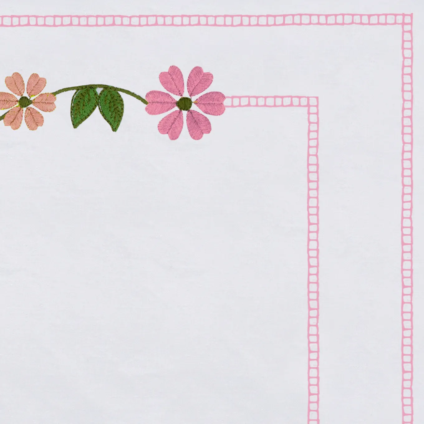 Set di 4 tovagliette con delicati ricami floreali di margherite rosa ispirati ai fiori selvatici del sud Italia. Realizzati su una base di lino bianco con filo di cotone makò, ogni pezzo presenta cuciture dettagliate incorniciate da un bordo a doppia linea. Il motivo floreale simboleggia gratitudine e celebrazione, aggiungendo un tocco raffinato e festoso alla tavola. Progettati con attenzione ai dettagli, queste eleganti tovagliette completano allestimenti per cene sofisticate.