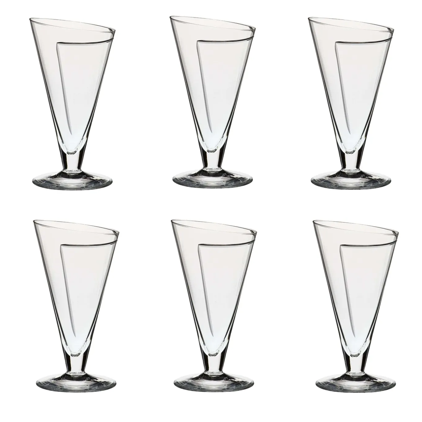 Chiamato così per la sua forma a cono di carta (“cartoccio” in italiano), questo magnifico set di sei bicchieri da vino è stato disegnato da Carlo Moretti nel 1983. Un set squisito e raffinato creato con metodi tradizionali, questi bicchieri di Murano soffiati a bocca vantano incisioni geometriche realizzate a mano con una mola diamantata e rifinite interamente a mano.
