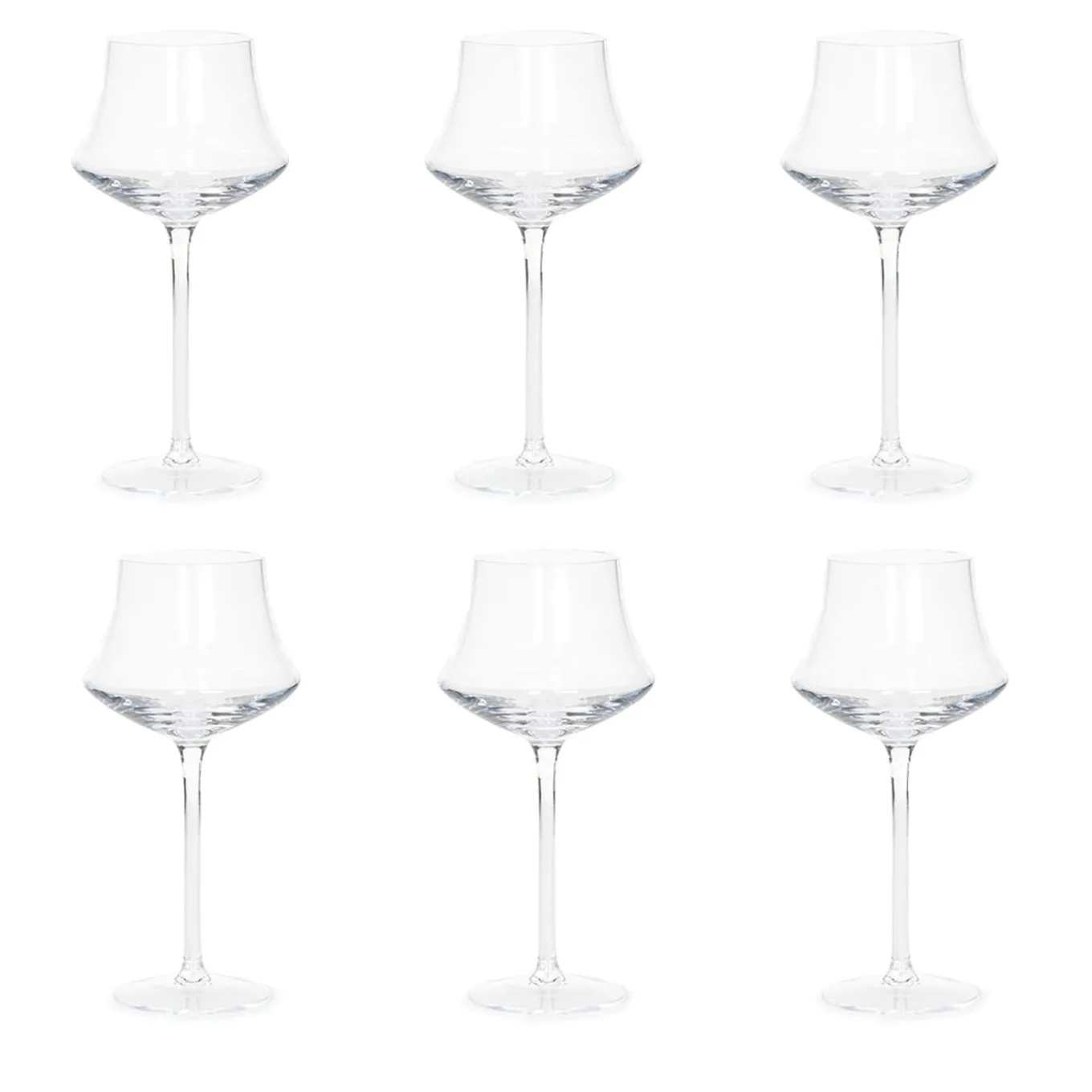 Set di 6 calici trasparenti da vino rosso.