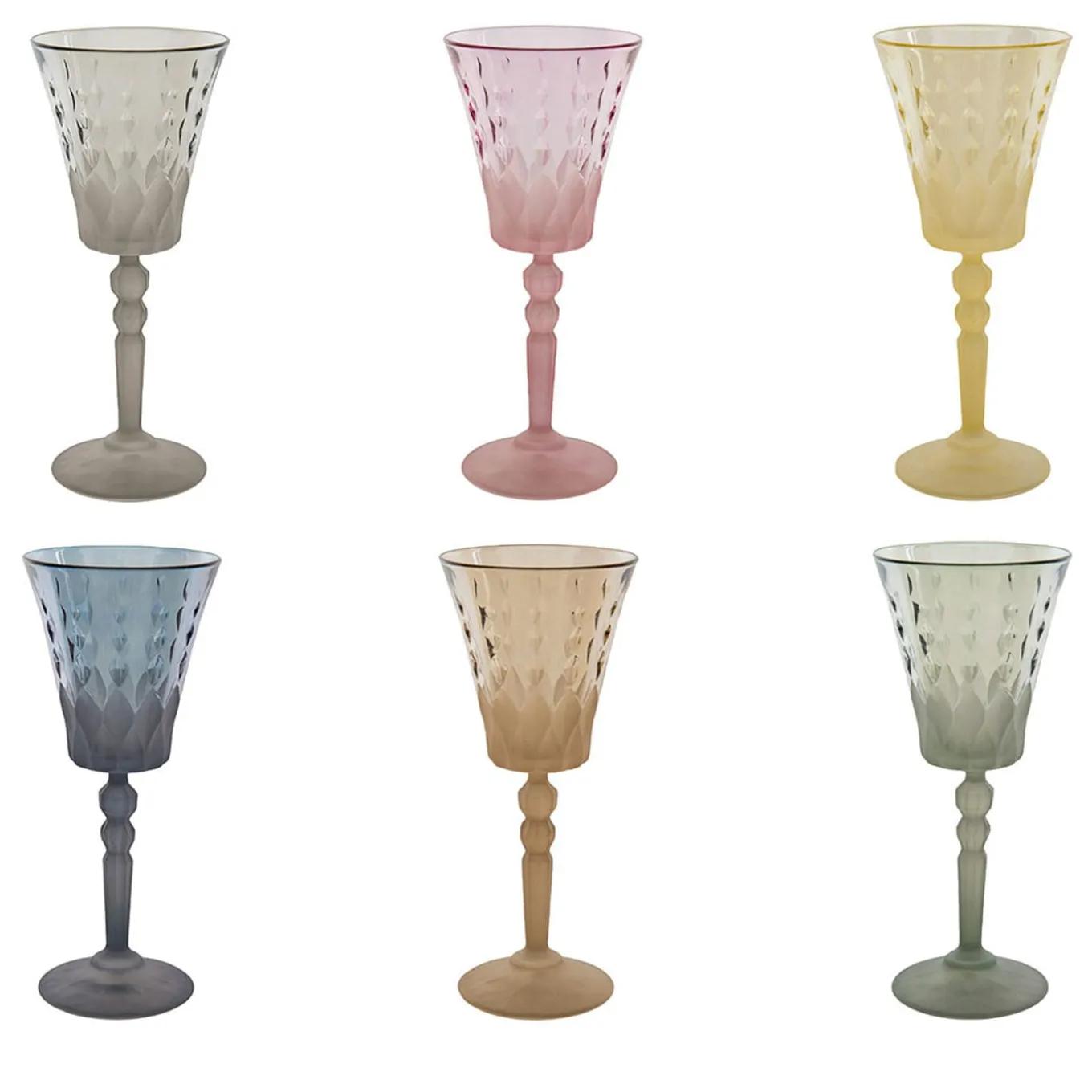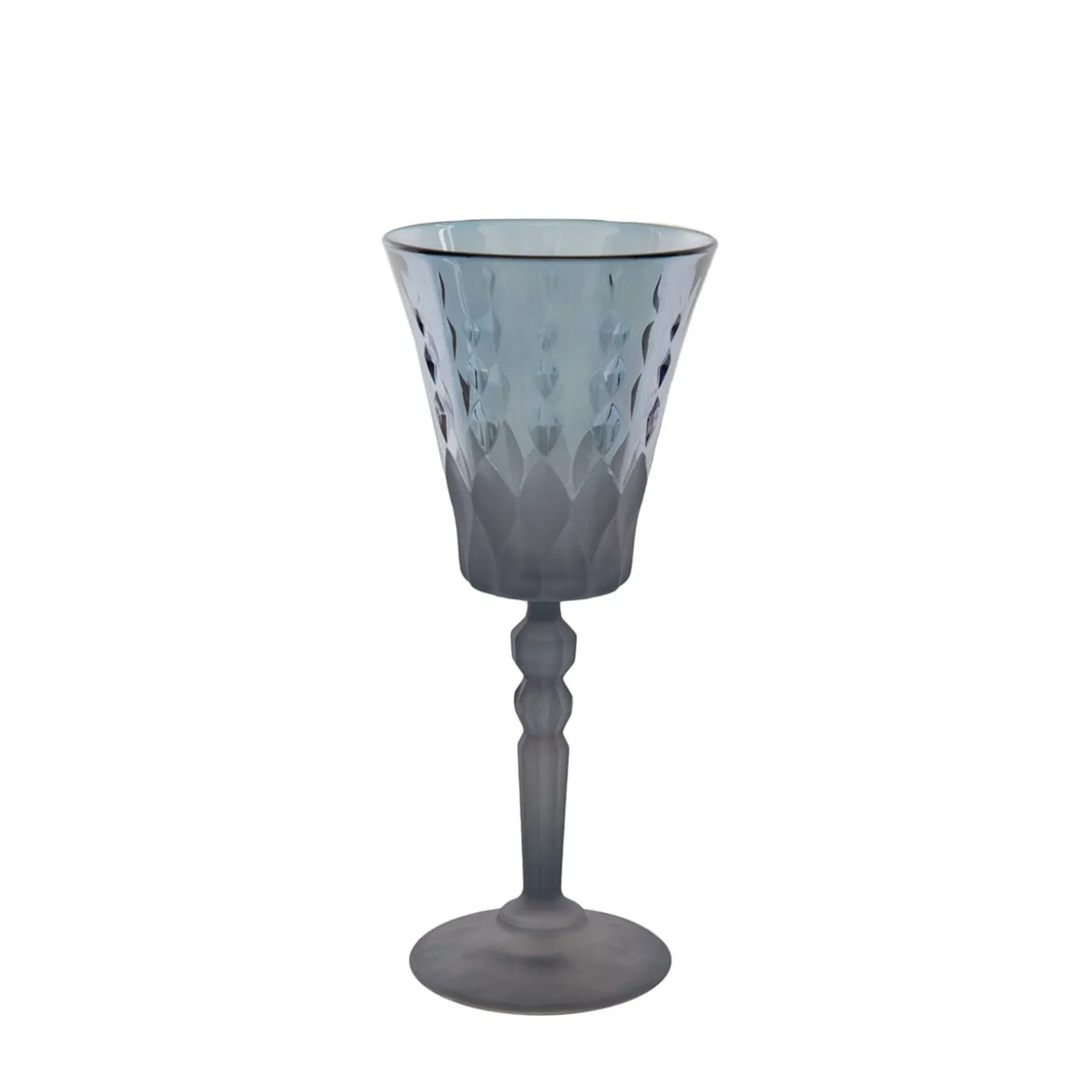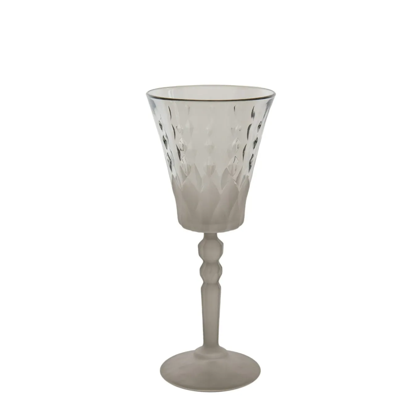 Combinazione armoniosa di colori, linee e texture, questo set di sei bicchieri da acqua con stelo presenta un look drammatico e contemporaneo che ravviva senza sforzo la tavola da pranzo. Realizzato a mano in vetro sabbiato, ogni pezzo vanta una coppa leggermente svasata e una base rotonda e piatta con uno stelo sottile e strutturato che richiama il motivo a puntini di ogni coppa.