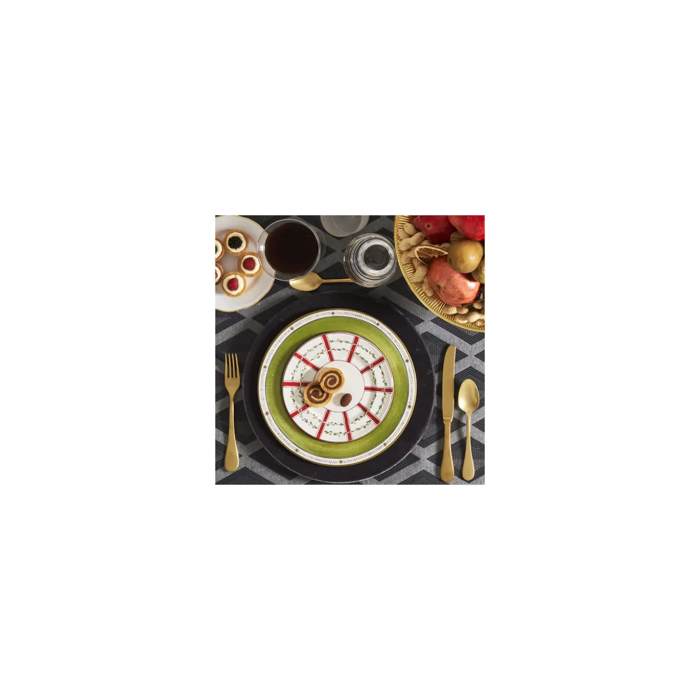 Uno straordinario set di dodici piatti, ognuno contraddistinto da un motivo differente: dodici scimmie, circondate da piante e frutta, sono intente a giocare, arrampicarsi, nascondersi, dando vita a una vera e propria composizione dinamica che attraversa l’intera collezione. Un tema ludico reso importante da un’ampia bordatura verde e una preziosa decorazione.