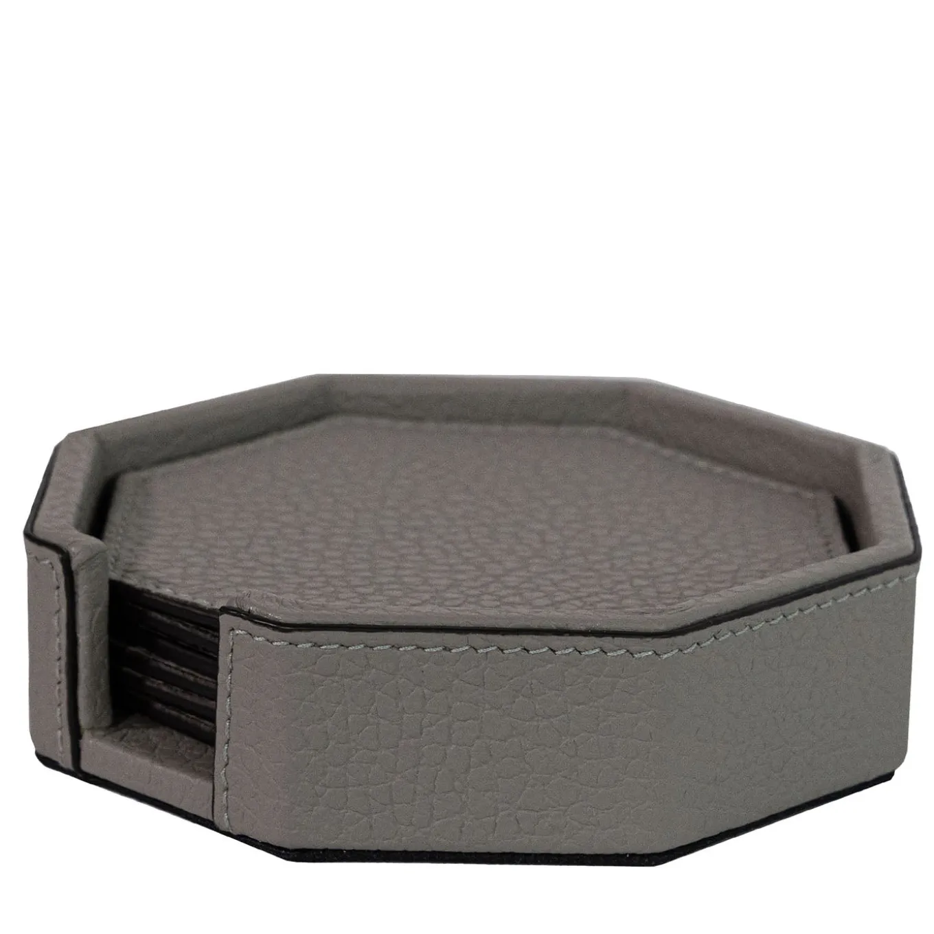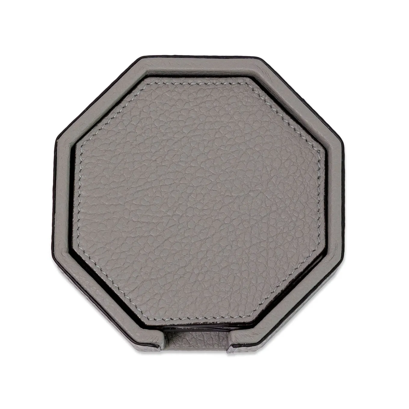 Set di sei sottobicchieri ottagonali nella tonalità Grigio Luna, realizzati in morbida pelle pieno fiore di alta qualità. Progettati per proteggere le superfici con stile, ogni pezzo presenta cuciture precise e una texture liscia, unendo durata a un’eleganza discreta. Accompagnati da un porta sottobicchieri rivestito in pelle coordinata che mantiene i sottobicchieri ordinati e facilmente accessibili, aggiungendo un tocco di raffinatezza a ogni tavola. Disponibili in quattordici colori aggiuntivi; per maggiori informazioni, contattare il Concierge.