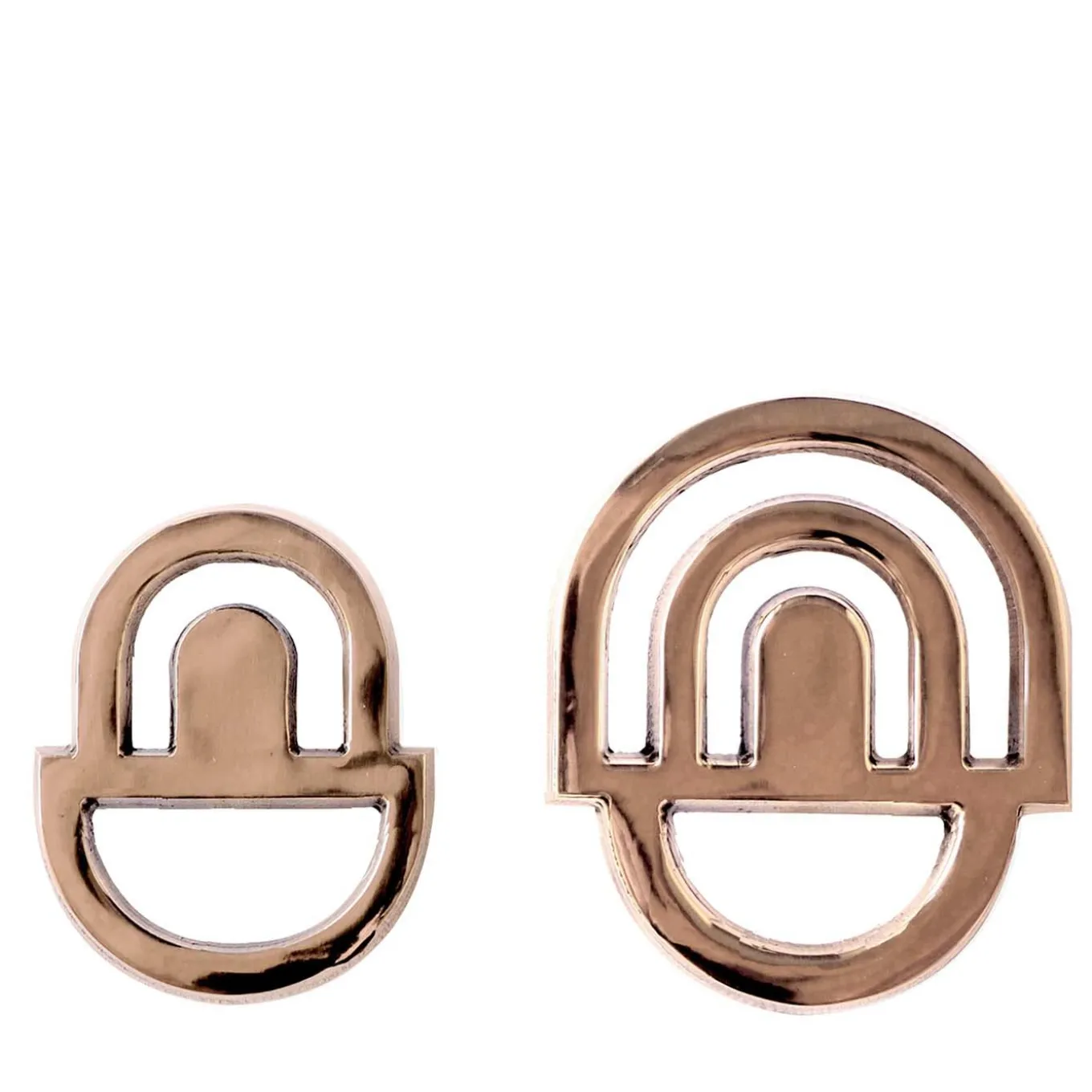 Questo splendido set di due ganci da parete in bronzo della collezione Bronzino è stato realizzato a mano in bronzo massiccio utilizzando l’antica tecnica della fusione in sabbia. Ispirato ai “picchiotti” rinascimentali che un tempo ornavano le porte d’ingresso delle residenze nobiliari e dei palazzi, questa versione contemporanea presenta un’estetica minimalista Art Déco dalle linee geometriche e fluide. La finitura lucida a specchio del pezzo è contrastata da lati porosi che conservano tracce del processo di fusione. I pezzi misurano 9 x 5 x 10 cm e 10 x 5 x 11 cm e aggiungeranno un tocco glamour all’ingresso o alla camera da letto.