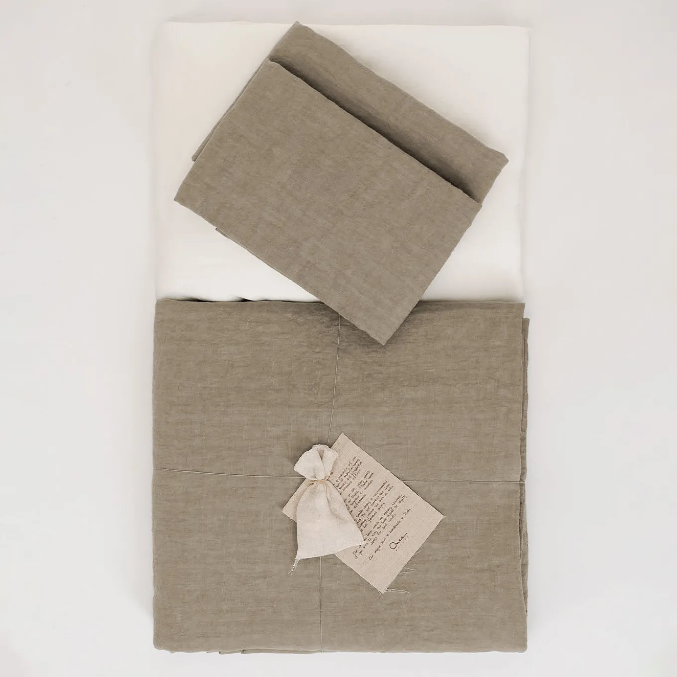 Scoprite l’eleganza con questo set da letto estivo color tortora, realizzato a mano con il lino più pregiato. Il set comprende un lenzuolo di sopra e federe abbinate in una sofisticata tonalità tortora, completate da un lenzuolo bianco per materassi fino a 30 cm di profondità. La tonalità delicata è perfetta per le stanze dai colori neutri, mentre la leggerezza del lino (165 gr/mq) assicura un tocco confortevole e croccante per un’esperienza di lusso. Disponibile in varie misure, chiedere al concierge per ulteriori dettagli.