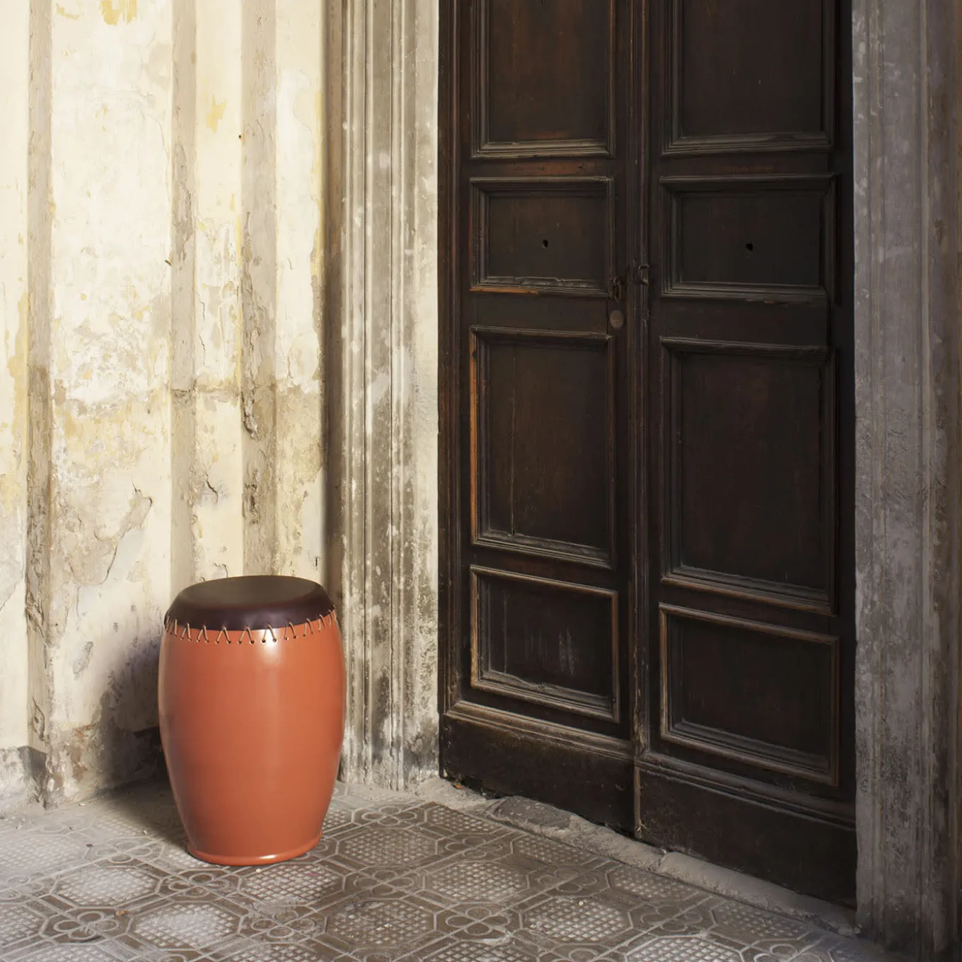 I tamburi tradizionali argentini hanno ispirato questo squisito design artigianale, la cui versatilità lo rende adatto come sgabello basso occasionale, tavolino o comodino. Una pregiata pelle marrone scuro sigilla la parte superiore della sua generosa silhouette realizzata in gres color terracotta, una combinazione che celebra le tradizioni e l’artigianato. È disponibile un’ampia gamma di misure; per maggiori dettagli, contattare il Concierge.