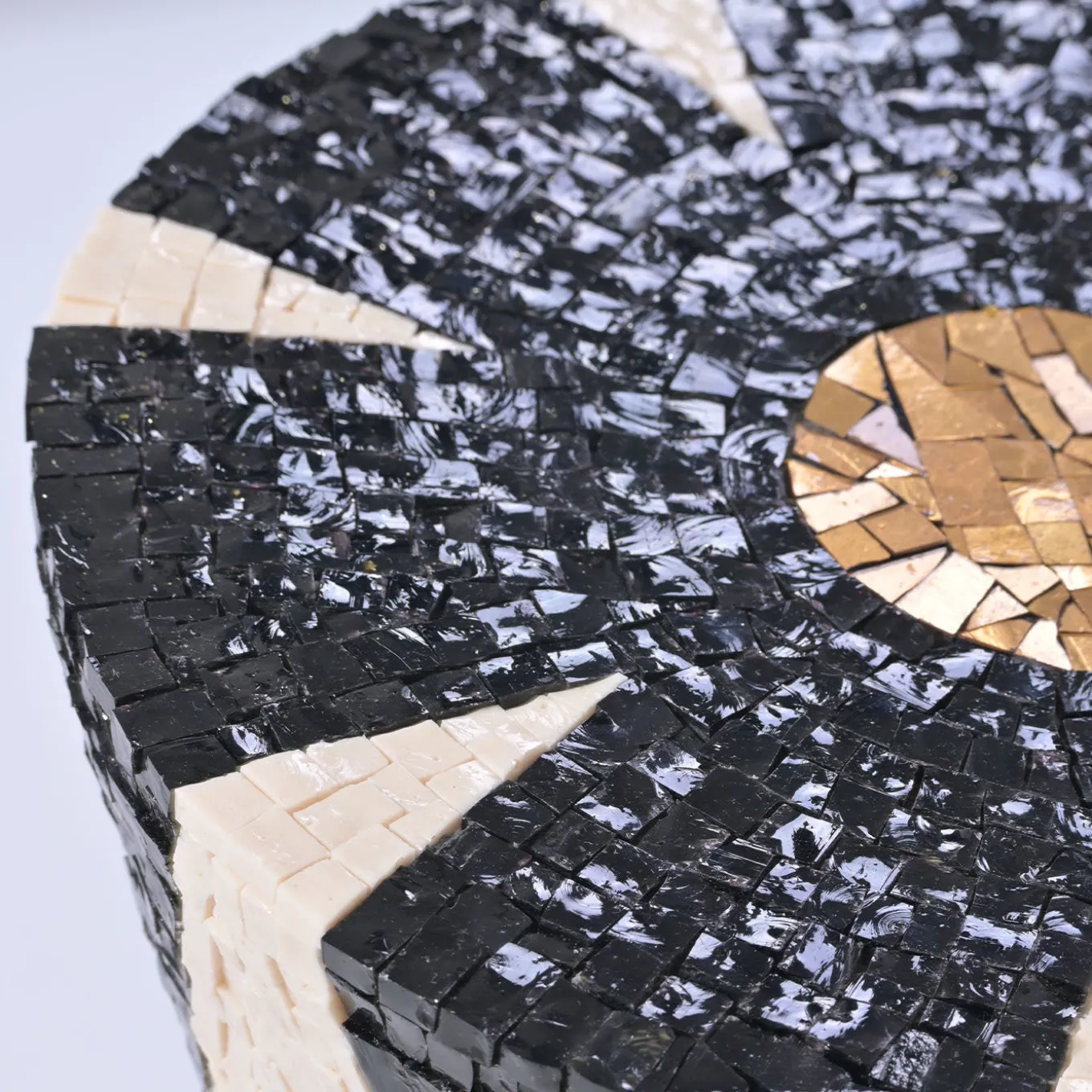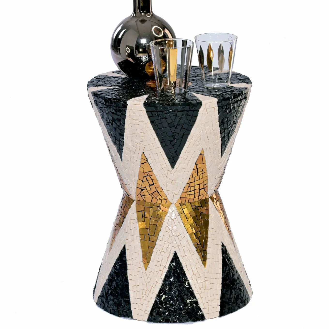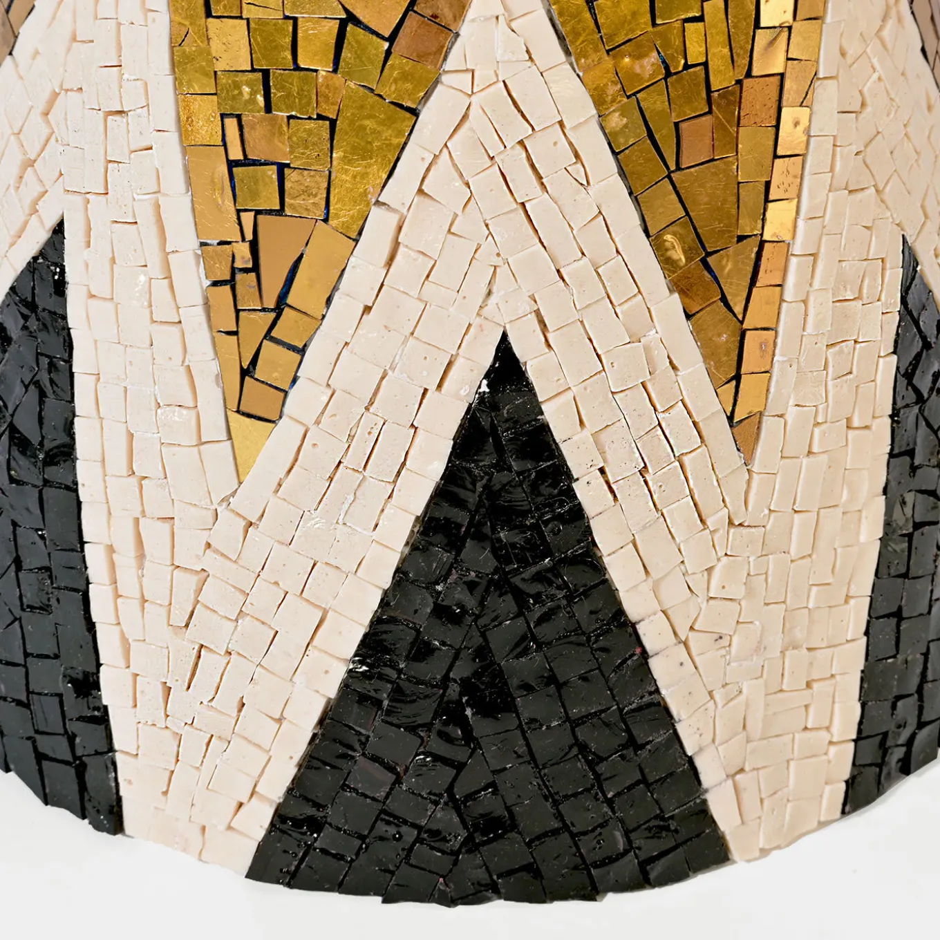 Un design feroce e maestoso che sarà un audace punto focale in un interno contemporaneo, questo sgabello scultoreo si ispira ai motivi degli sgabelli dei leoni del circo e al leone alato dell’iconica Piazza San Marco a Venezia. Abilmente realizzato a mano con 7000 tessere di mosaico in nero, beige e oro 24 carati tagliate a mano presso la fornace Orsoni di Venezia.