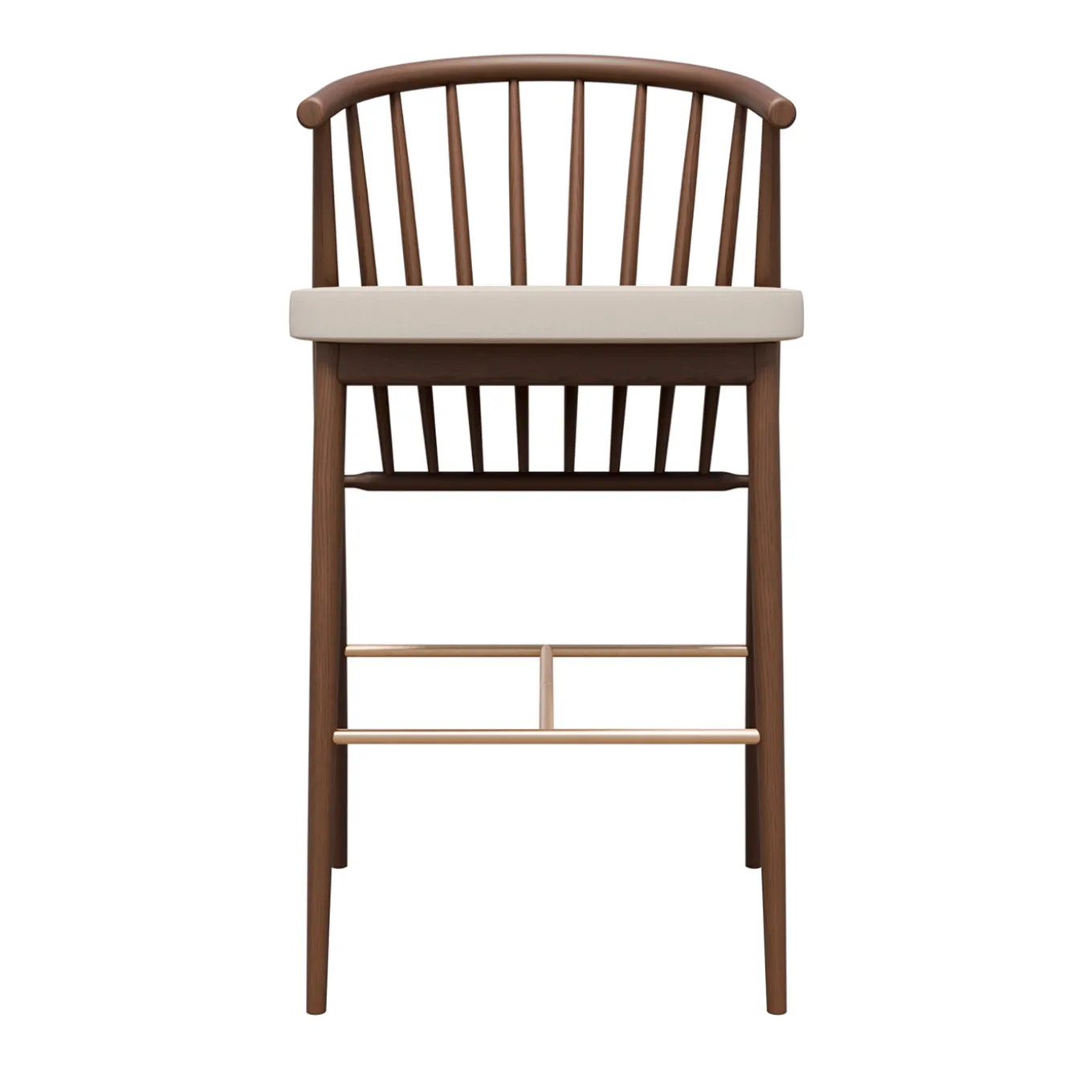 Questo sgabello dal design raffinato presenta uno schienale curvato a listelli torniti che conferisce leggerezza e stile. Dotato di seduta imbottita rivestita in tessuto non sfoderabile, offre un comfort ottimale. La struttura è completata da un pratico poggiapiedi in metallo. L’altezza della seduta da terra misura 74 cm lo schienale è alto 30 cm dalla seduta. Design by Libero Rutilo.