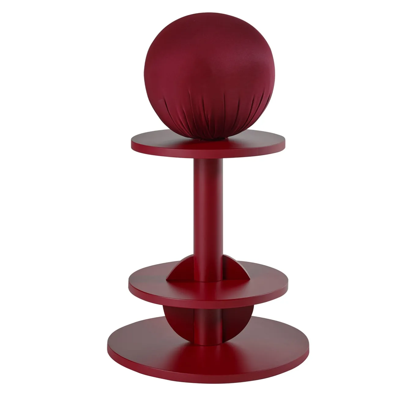 Uno sgabello unico e versatile, che può essere abbinato ad altri elementi della colorata collezione Matto della designer Anna Polisano. Caratterizzato da una struttura in legno massiccio di colore rosso vivo sormontata da una sfera in poliuretano imbottita in scuba per una seduta confortevole, la silhouette minimalista lo rende un accessorio distintivo perfetto per le aree bar o lounge delle case contemporanee.