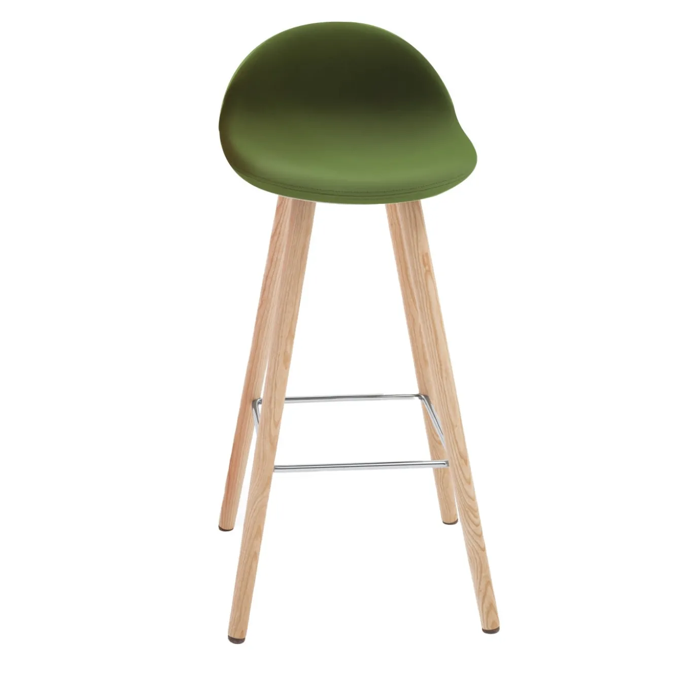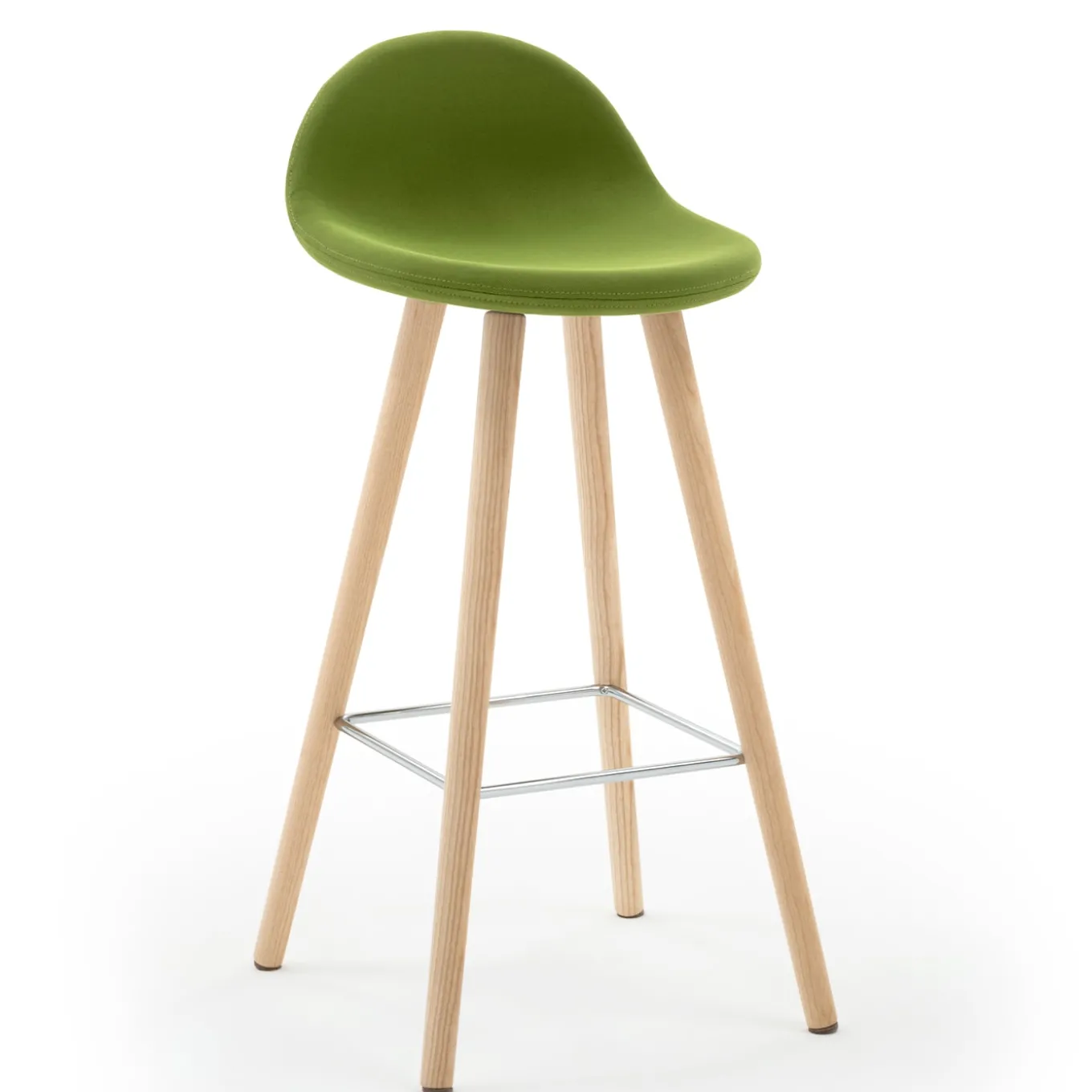 Il design elegante e fresco di questo sgabello in stile contemporaneo emerge dalle sottili gambe in frassino naturale e dalle dolci curve che delineano la seduta imbottita. Rivestito in tessuto ignifugo verde pisello per una seduta confortevole e sicura, è completato da un poggiapiedi in tondino d’acciaio cromato. Consultare il Concierge per le opzioni di personalizzazione disponibili.