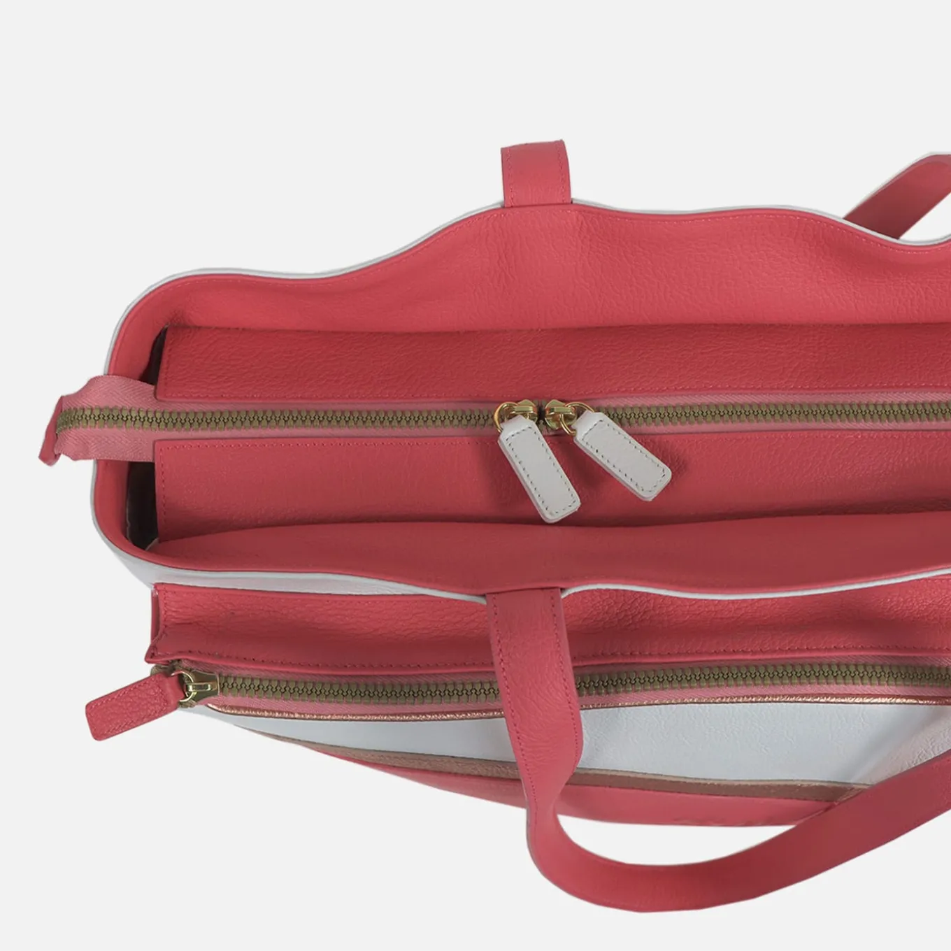 Questa shopper sportiva, dallo straordinario design ergonomico, unisce funzionalità ed estetica. Realizzata a mano in vera pelle impermeabile, presenta una combinazione di tonalità bianche, rosa e bronzo che ne esaltano il carattere elegante e sportivo. È dotata di un’ampia tasca interna e di una tasca esterna per le racchette da tennis, di manici regolabili e di una tracolla opzionale a scelta. Personalizzabile su richiesta, si prega di chiedere al Concierge per le opzioni.
