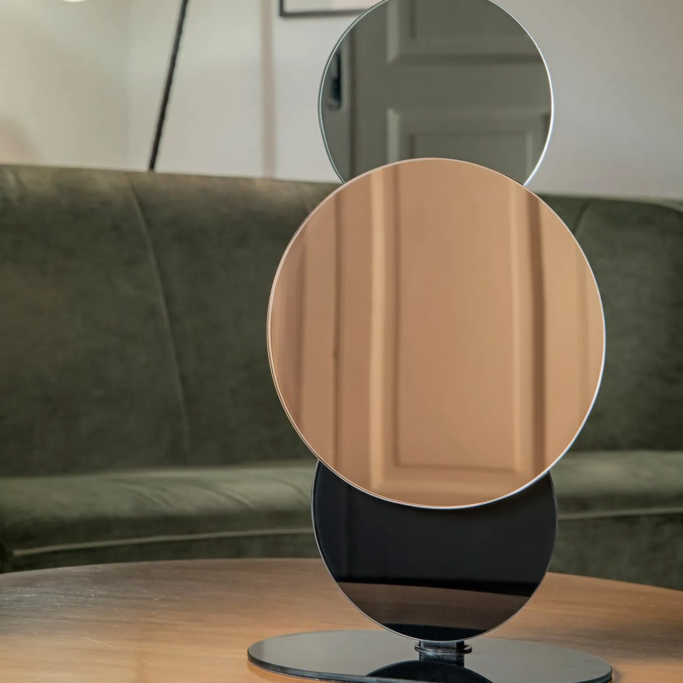 Ispirato al concetto di equilibrio in più di un modo: l’equilibrio del volume e della simmetria, dove il costruttivo incontra il grafico; l’allusione alla dimensione antropologica, dove il senso di armonia, ordine e realizzazione deriva dal perfetto equilibrio formale ed esistenziale. La leggerezza senza peso e la bidimensionalità della forma sono esaltate dai colori tenui, in un perfetto mix giocoso di specchi e vetri colorati.