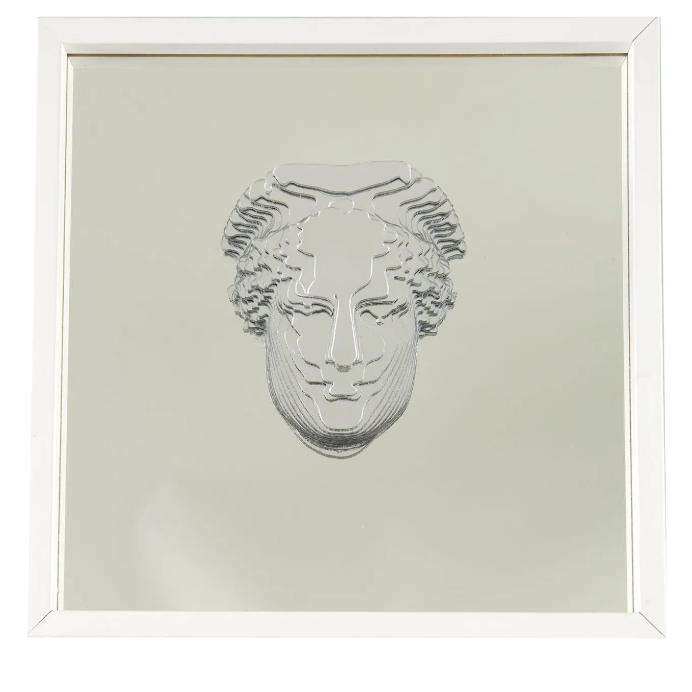 L’opera Hera Mirror di Daniele Fortuna prende spunto da un soggetto classico come il volto di un personaggio mitologico a cui però si aggiunge un’iconografia pop e contemporanea. “Mi ha incuriosito il fatto che lo spettatore possa vedersi riflesso in una figura mitologica e sentirsi parte di essa. Ogni volta che guarderà l’opera, il riflesso sarà diverso e un nuovo scenario si dipanerà all’interno dello specchio”. – Daniele Fortuna