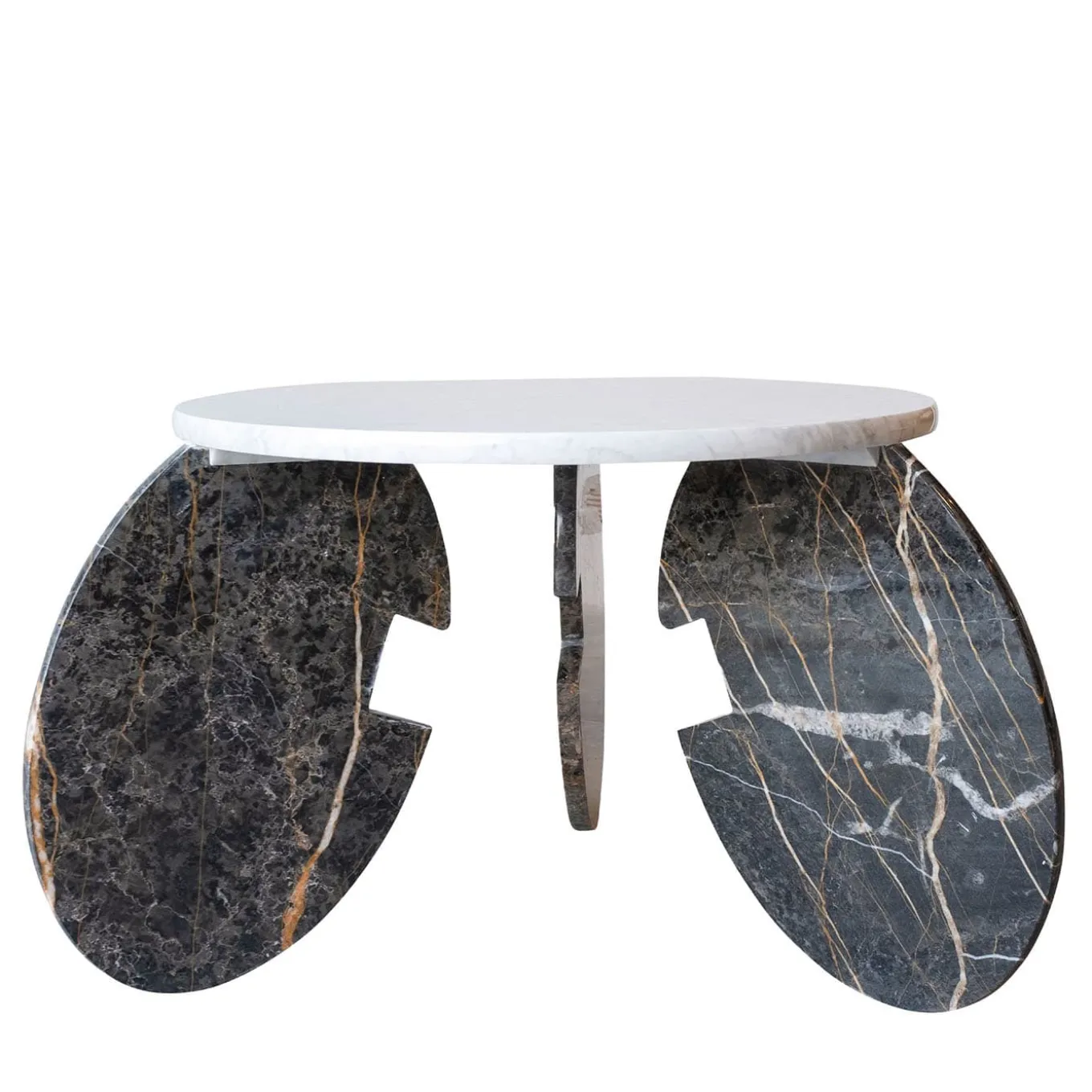 Questo tavolino d’effetto combina una silhouette minimalista di grande impatto visivo con un design classico. L’elegante piano rotondo è realizzato in marmo di Carrara con una struttura in marmo Port Laurent che completa il design.