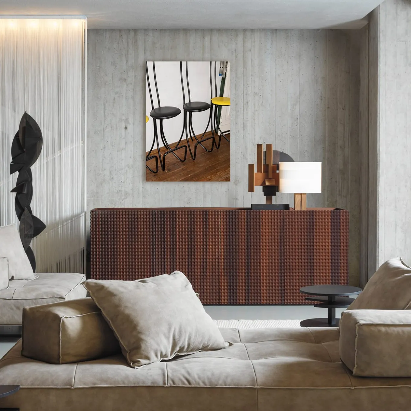 Questo lavoro fa parte del progetto Casestudio, che ci porta all’interno degli studi di alcuni dei più noti designer attraverso l’obiettivo del fotografo. Con il suo sguardo sensibile e riflessivo, il lavoro di Capuano può aiutare a individuare ciò che è davanti ai nostri occhi ma che spesso è irriconoscibile, ponendo lo spettatore nella condizione di osservatore privilegiato. Sgabello Spluga di Castiglioni. Edizione limitata di sette esemplari. La cornice non è inclusa.