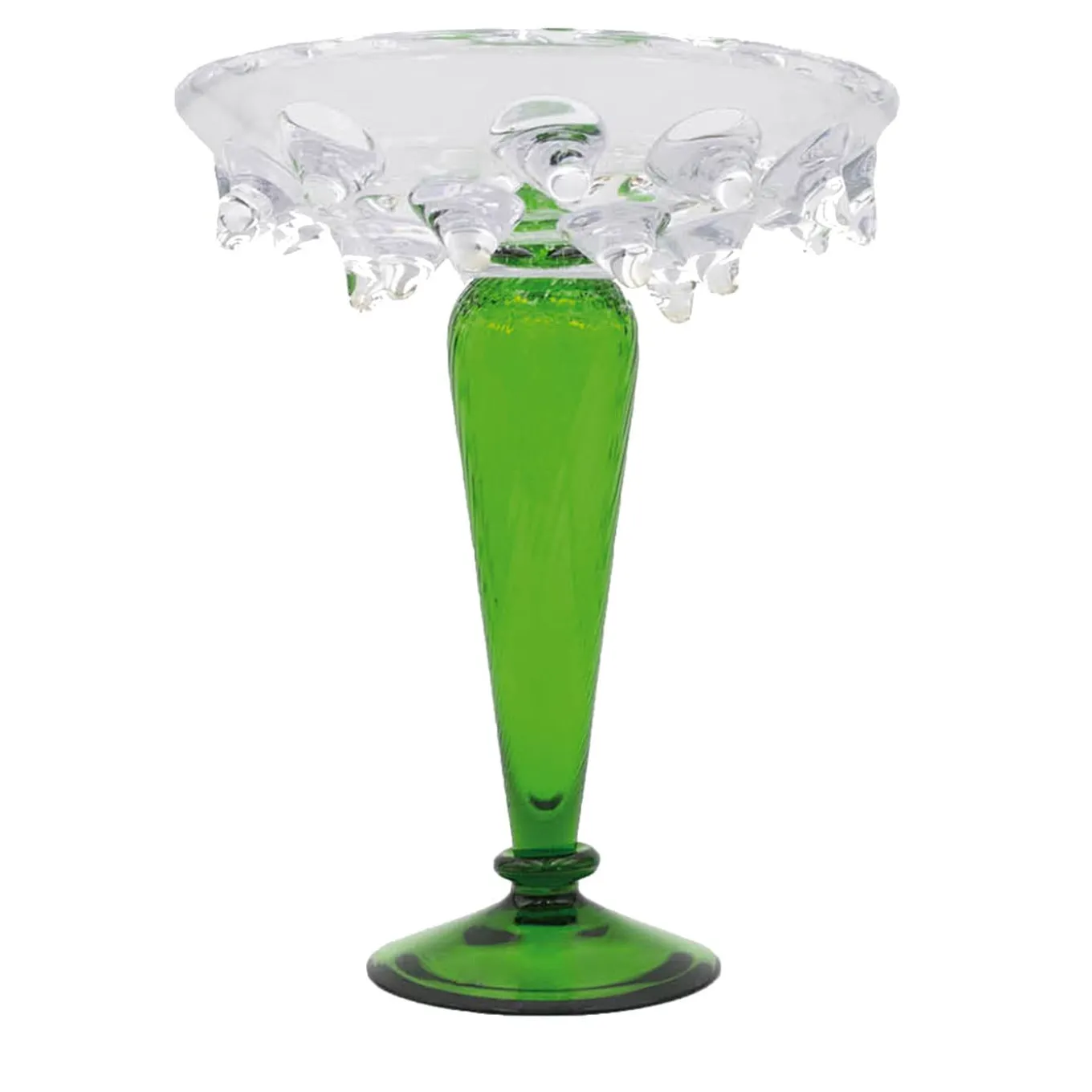 Un’audace giustapposizione di finiture e accattivanti effetti materici sono gli elementi ricorrenti nei progetti di Borek Sipek per Driade, e questo stand non fa eccezione. Il corpo in vetro di colore verde, elegante, è caratterizzato da una ciotola trasparente ricoperta di spighe nella parte inferiore. Perfetto per disporre con stile cupcake, frutta o un centrotavola floreale per una dichiarazione più lussuosa.