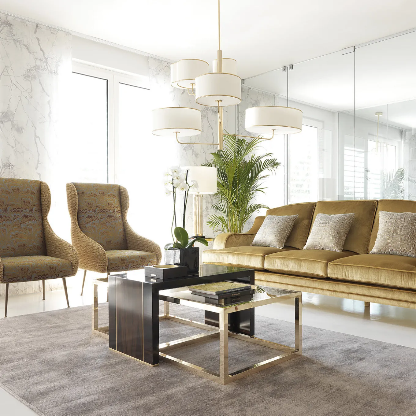 Questo prezioso set di tre tavolini sarà un’aggiunta versatile e sorprendente a una casa moderna e contemporanea. Posizionati insieme, incastrati l’uno nell’altro o in zone diverse del soggiorno, questi pezzi esporranno piccoli oggetti di uso quotidiano o da collezione in un numero infinito di configurazioni. Il set comprende due pezzi in ottone con piano in vetro bronzato, entrambi di 65 x 65 x 38 (h) cm e uno in legno di ebano e ziricote con dettagli in ottone, di 84 x 45 x 46 (h).