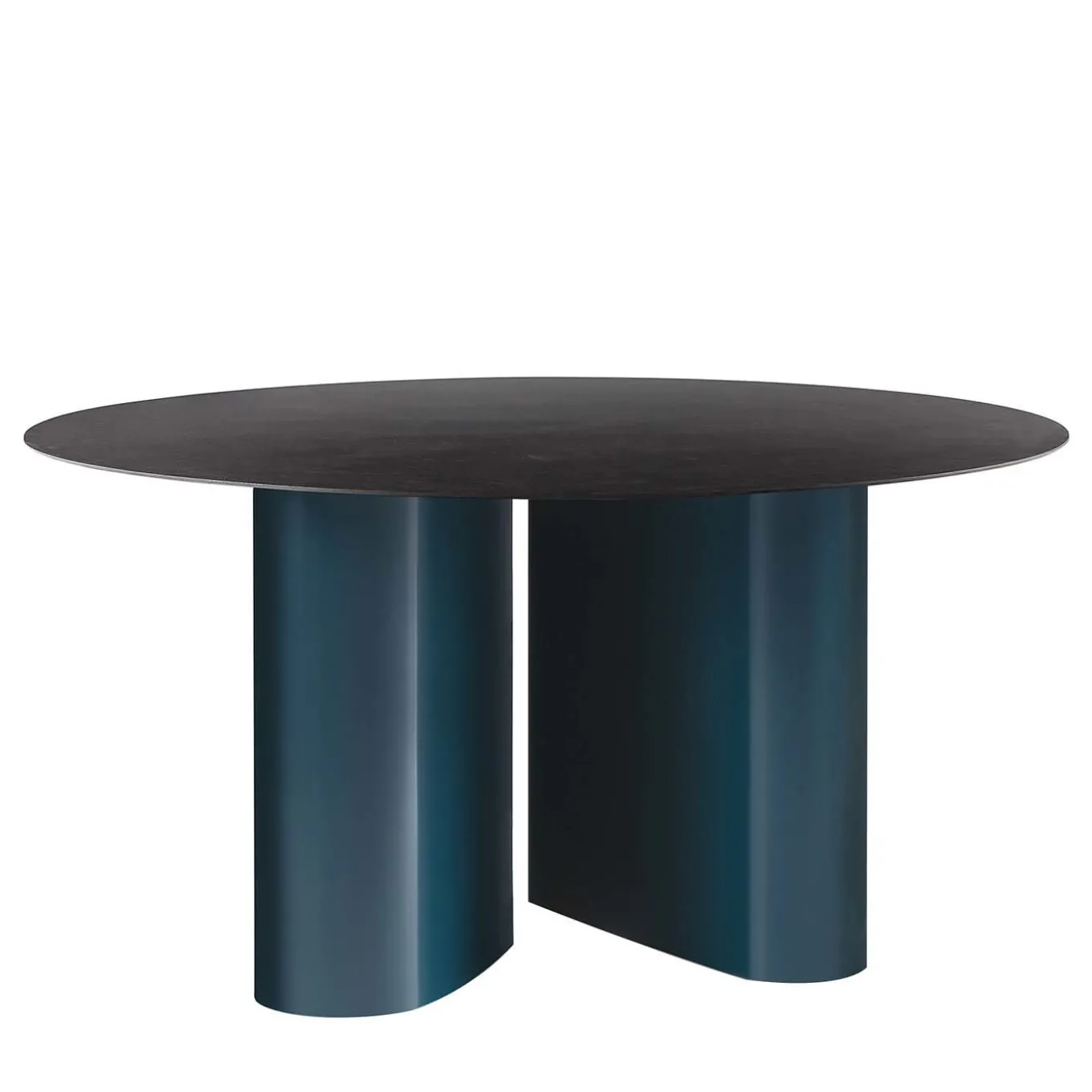 Questo tavolo da pranzo è un pezzo unico e sofisticato di arredamento funzionale che eleverà l’aspetto di uno spazio interno o esterno. Interamente realizzato in acciaio, è composto da due elementi cilindrici con finitura laccata blu-verde e texture liscia, che sostengono solidamente un piano rotondo con finitura grigia testurizzata. Consultare il Concierge per le opzioni di personalizzazione in un’ampia gamma di colori vivaci e per conoscere la disponibilità e il costo con il piano di Ø 160 o 180 cm.