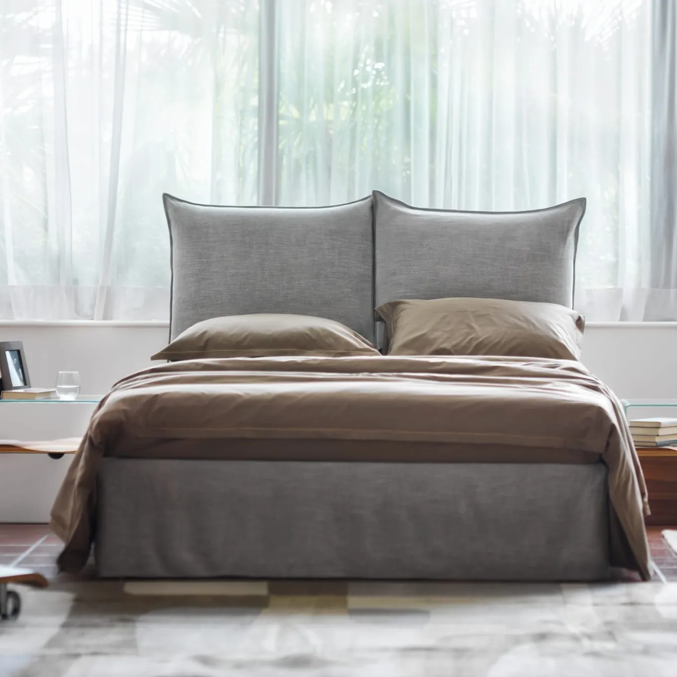 Opera d’arte scultorea di StH e Toyo Ito, questo tavolino combina cinque diversi tipi di legno (noce, mogano, ciliegio, rovere e frassino) in un ripiano incorniciato da vetro extrachiaro, creando un effetto “trompe l’oeil” di sospensione a mezz’aria. Questo pezzo, che ricorda la panca Ripples di Toyo Ito, può essere personalizzato con un cassetto laccato bianco e in noce su rotelle, trasformandolo in un superbo comodino; per maggiori informazioni, consultare il Concierge.