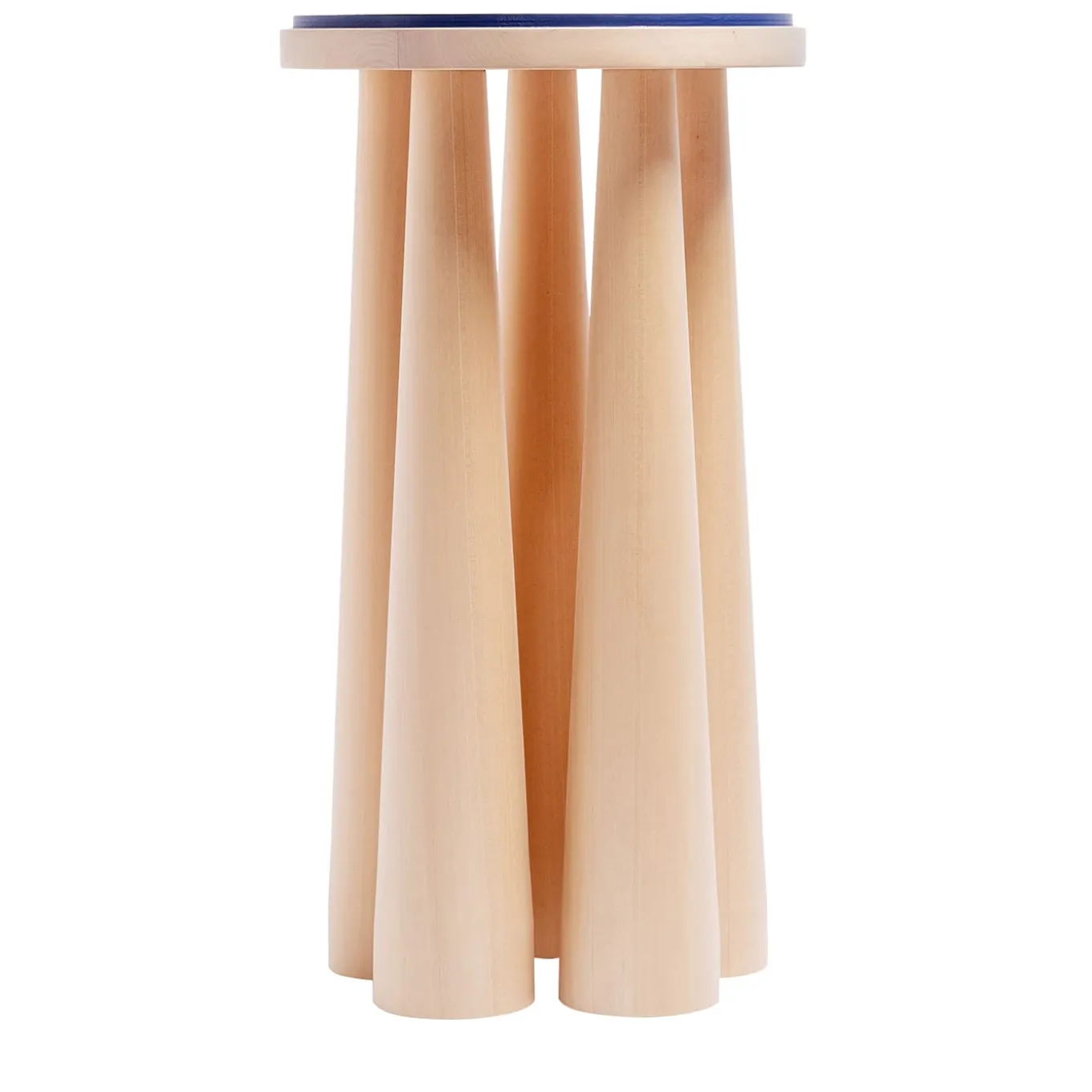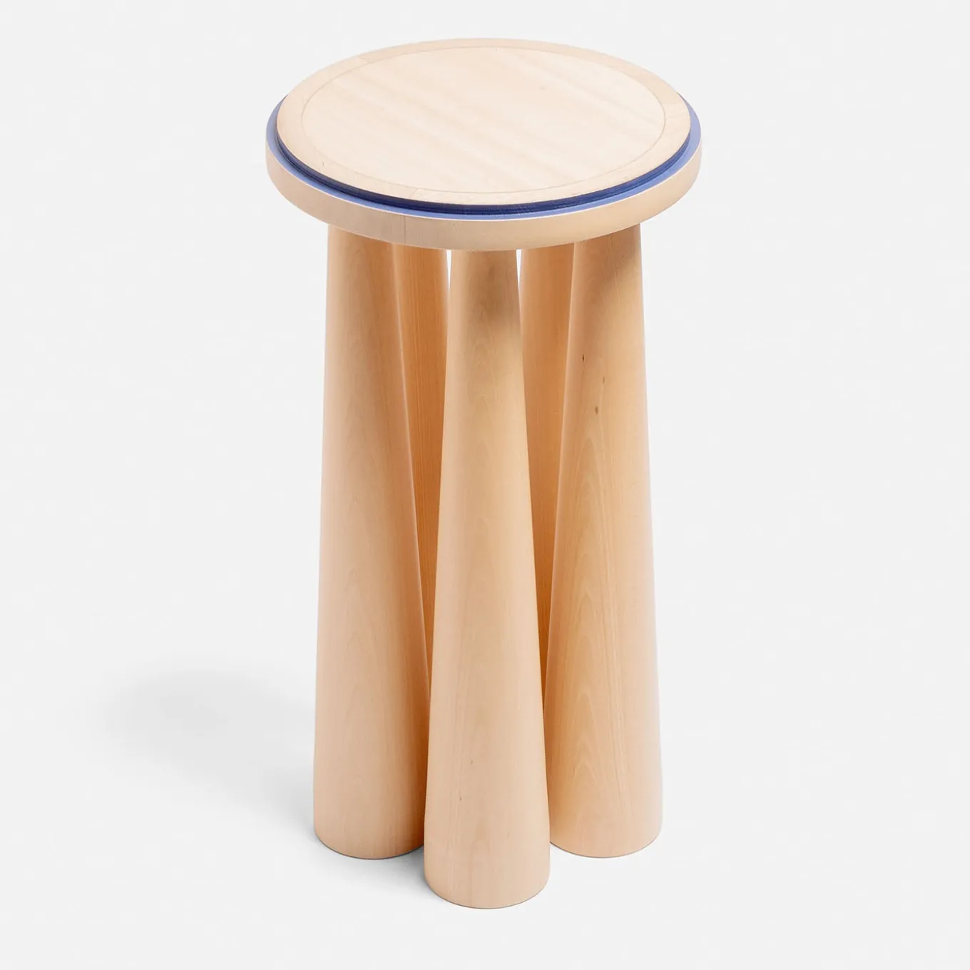 La collezione Bogdan nasce da un unico tronco di tiglio, generato da un elemento specifico. Un mobile monomaterico, caratterizzato da una distinta linea di colore che ne definisce il perimetro e la forma. I coni alla base, disposti in cerchio per creare un unico elemento visivo, sostengono il piano che si configura come parte unificante di ciò che lo solleva. Le coste fresate colorate impreziosiscono e completano il piano, creando, insieme alle gambe, giochi di chiaroscuro tutt’intorno.