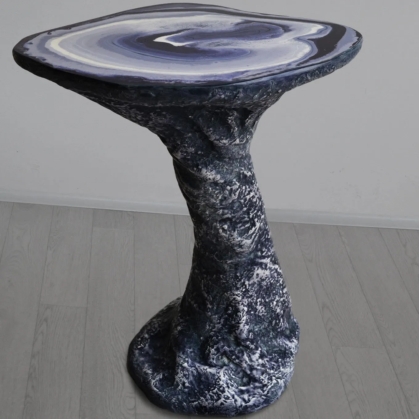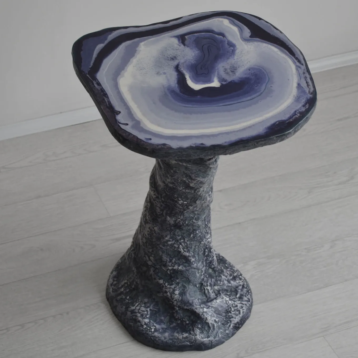 Il tavolino Charles è realizzato da un unico pezzo, caratterizzato da un sorprendente contrasto tra il piano in scagliola liscia e lucida e la texture grezza e sfaccettata del fusto. Il design crea un dialogo tra eleganza e artigianalità, offrendo un pezzo di spicco che affascina senza invadere lo spazio. Perfetto da accostare a un divano contemporaneo, il tavolo unisce l’estetica alla funzionalità.