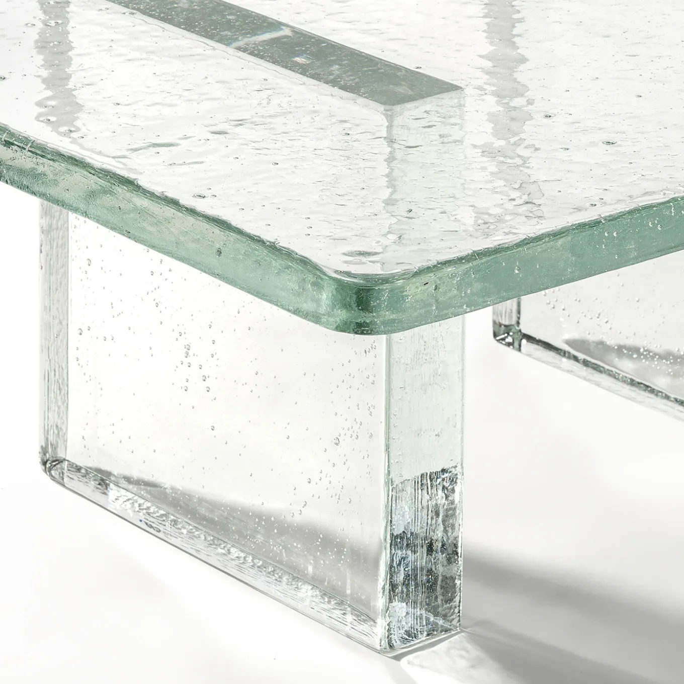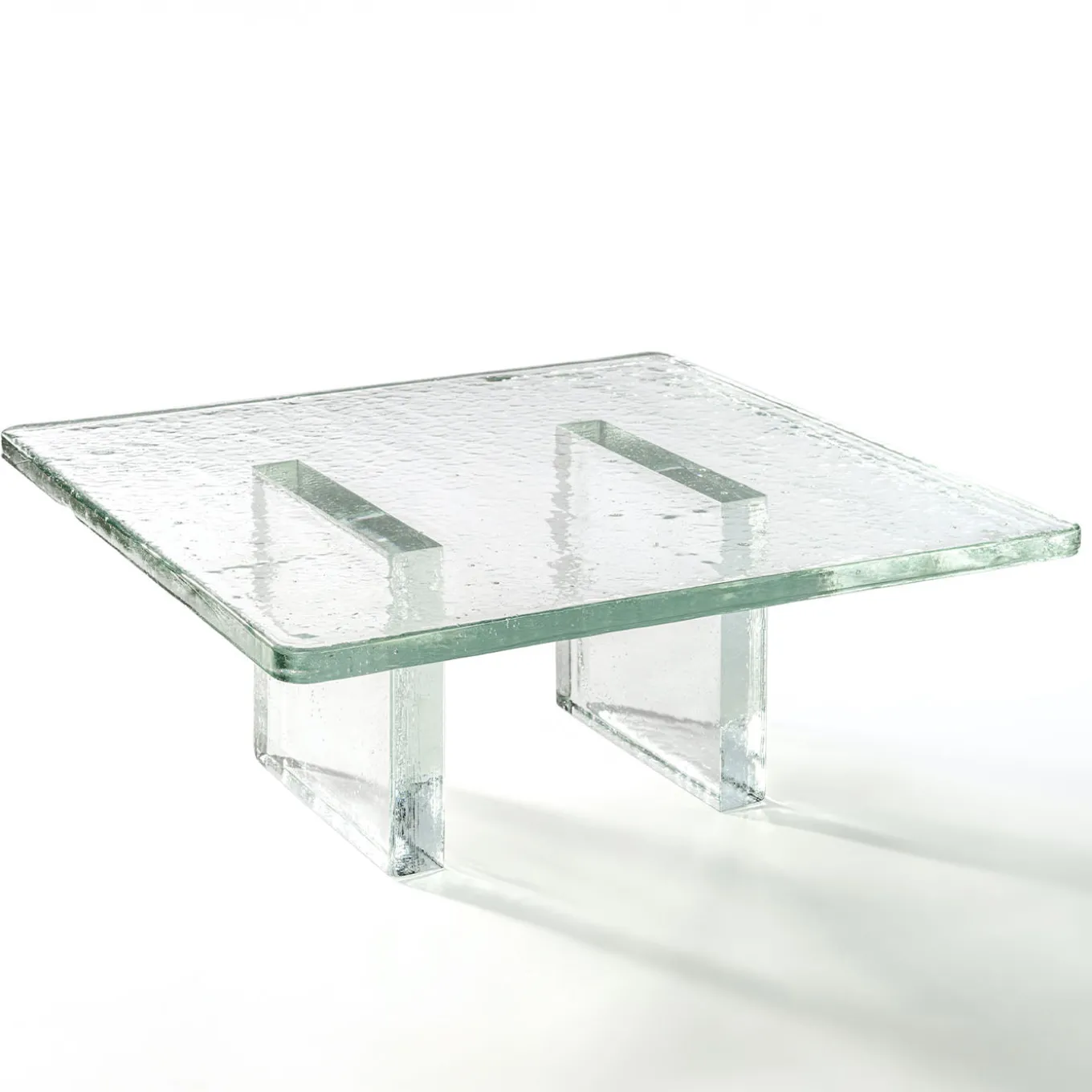 Il tavolino da caffè quadrato Berg in vetro di John Pawson presenta un design distintivo che enfatizza le proprietà tattili e visive uniche del materiale. Realizzato in vetro pressato con una superficie testurizzata, questo tavolo di dimensioni medie esplora l’interazione tra forma concreta ed estetica astratta. Il suo piano quadrato minimalista poggia su due robusti barre di supporto, creando un profilo bilanciato e incisivo ideale per interni contemporanei.