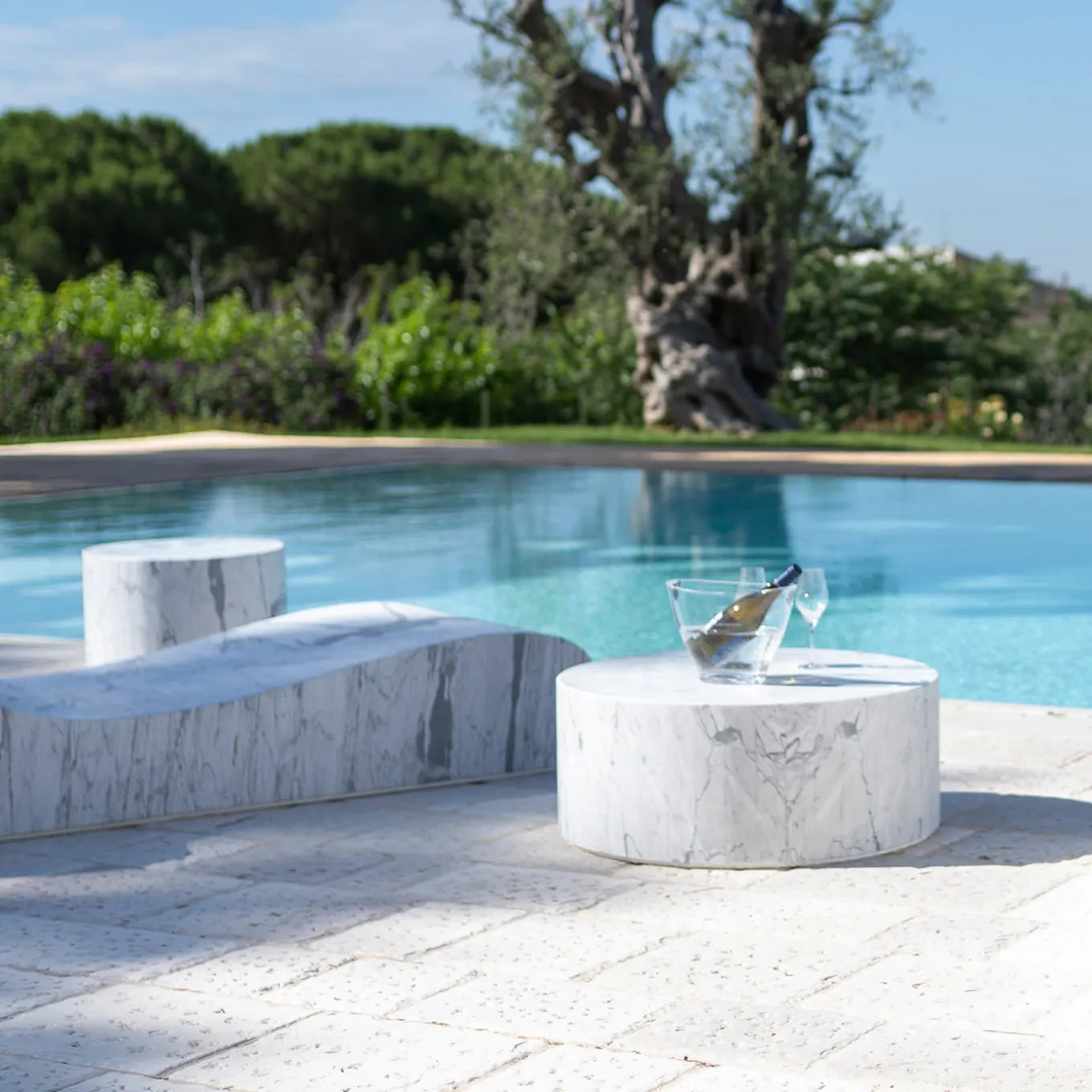 Definito da una silhouette raffinata e luminosa, questo tavolino di grandi dimensioni è una soluzione elegante per completare gli interni in stile contemporaneo. Il corpo cilindrico vanta un raffinato esterno in marmo di Carrara, le cui venature uniche sono esaltate per creare un accattivante aspetto monolitico. Chiedete al Concierge le opzioni di personalizzazione disponibili.