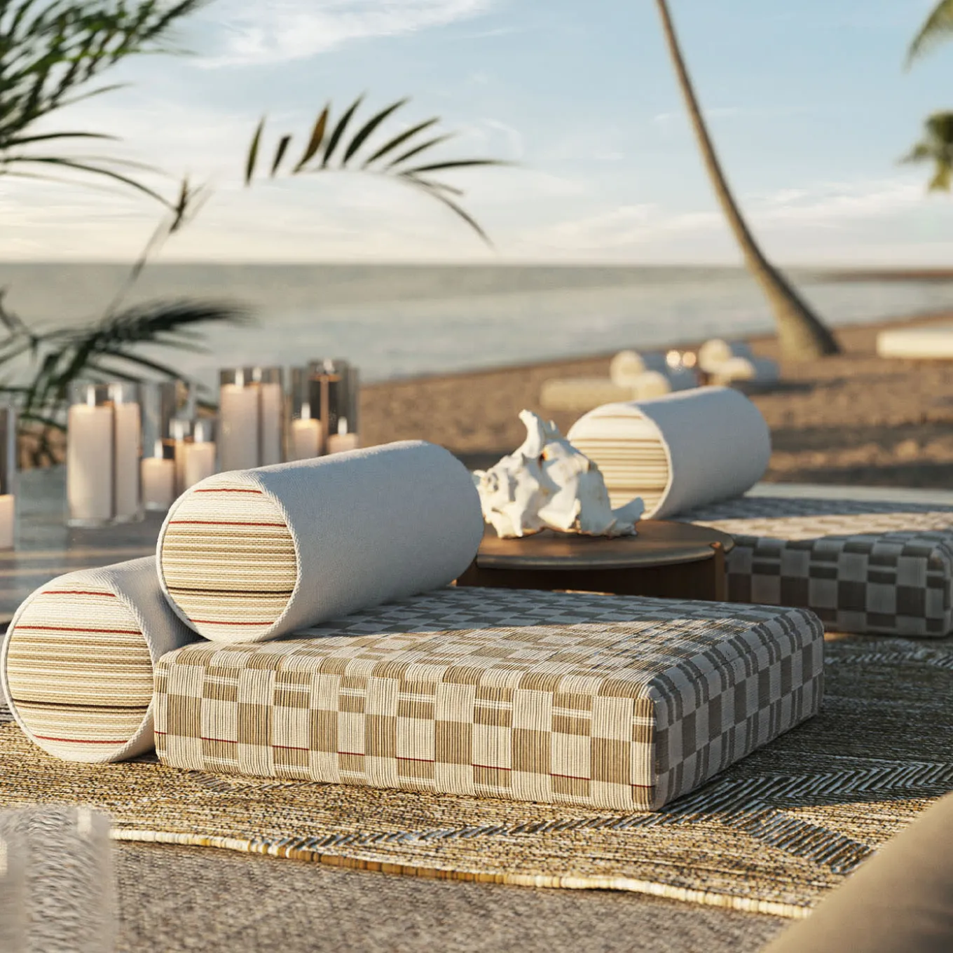 Shams (Sole in arabo) è un tavolino da esterno dalla forma essenziale e dall’aspetto solido che richiama uno stile di vita nomade. Le gambe in legno di iroko sostengono un piano rotondo in compensato marino di Okumè dall’effetto tattile e materico. La superficie è realizzata con polimeri a base d’acqua, olio di girasole, inerti naturali e materiali di scarto recuperati, applicati a mano da artigiani specializzati, che creano ogni giorno un prodotto unico. Il prezzo include la copertura protettiva.
